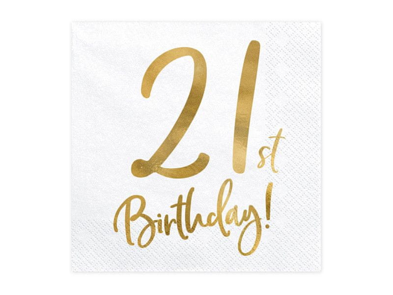 Serviete za 21. rojstni dan, bele, 33×33 cm (1 karton / 12 paketov) (1 paket / 20 kosov) Celoten opis