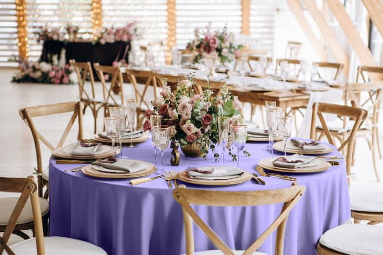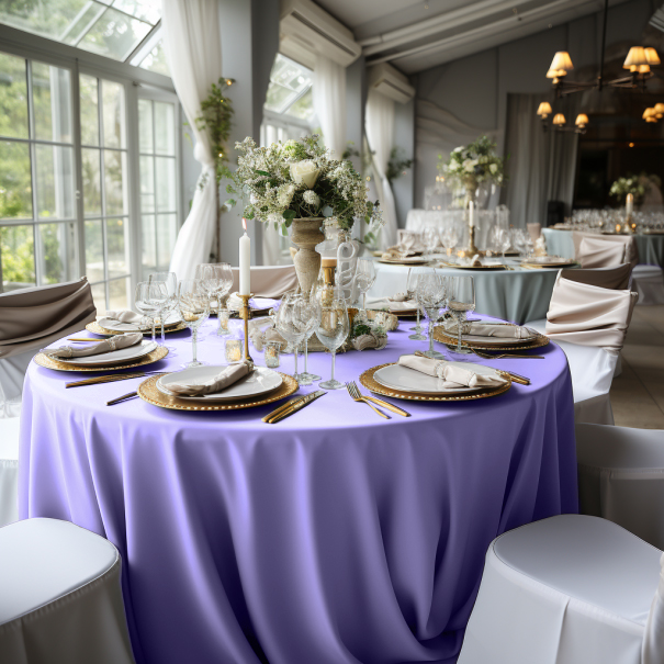 Okrogli prt, ki ga ponujamo, je elegantna dekoracija za sprejeme, poroke in bankete.