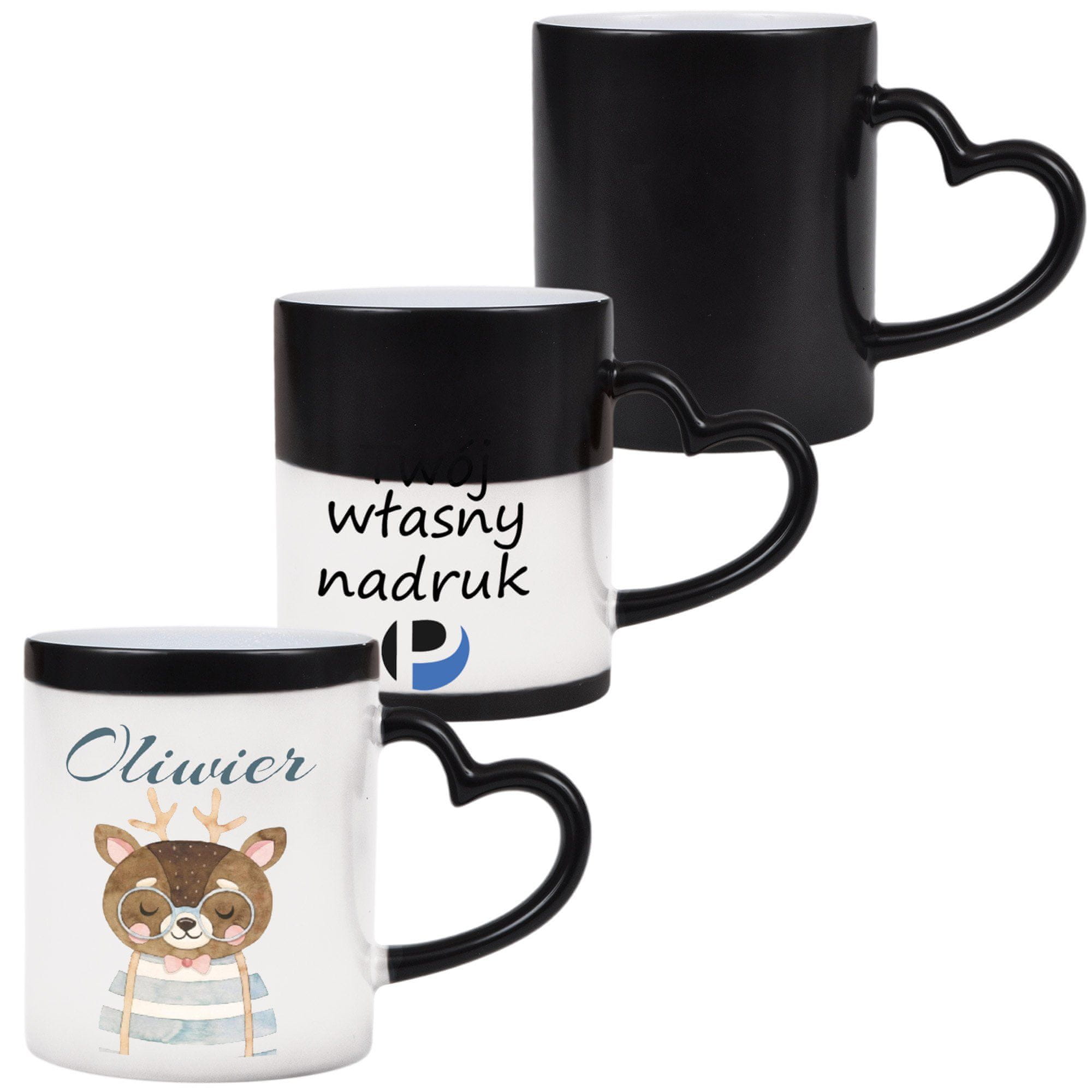 Ta elegantna črna skodelica z očarljivim ročajem v obliki srca na prvi pogled razkrije skriti potisk, ko vanjo natočite vročo pijačo! Je popolno darilo za ljubljeno osebo ali izviren pripomoček zase. Personaliziran potisk bo vsakemu požirku kave ali čaja dodal edinstven pomen.