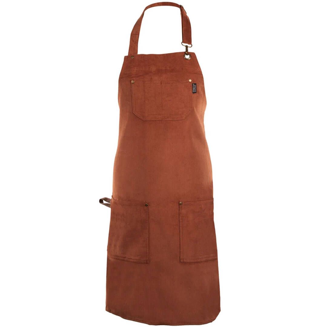 Predpasnik Velmar je izdelan iz bogate rebraste velur tkanine s skrbno uravnoteženo mešanico bombaža in poliestra, ki združuje mehkobo naravnih vlaken z vzdržljivostjo umetnih. Njegove naravne, zemeljske barve ustvarjajo v kuhinji ali ustvarjalnem prostoru topel in umirjen ambient. Z zasnovo za vsakodnevno uporabo ponuja nastavljiv ovratni trak za popolno prileganje ter priročne sprednje žepe, v katerih boste imeli vse potrebne pripomočke vedno pri roki.