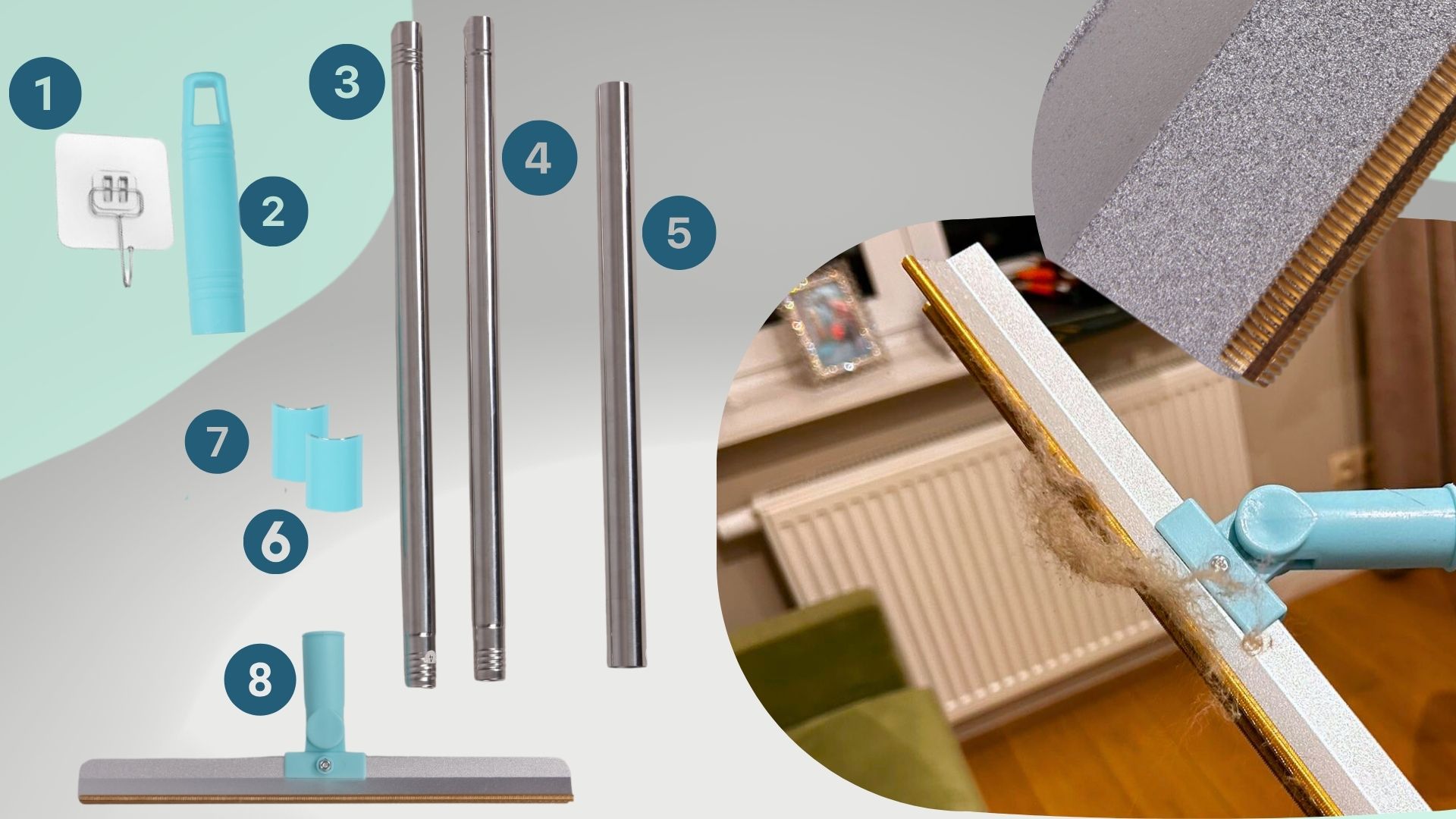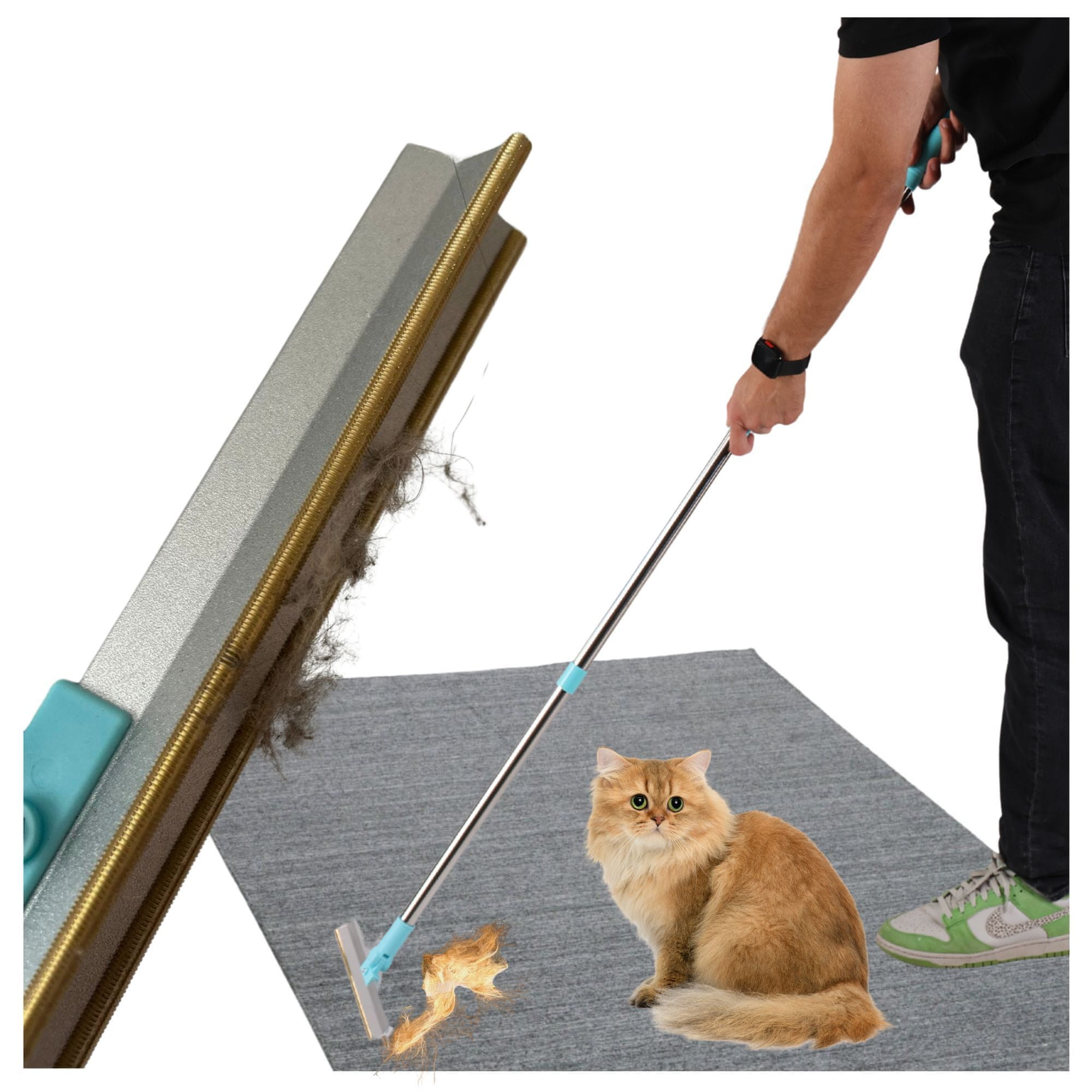 • ✅ Posebna krtača – popolno orodje za lastnike kosmatih hišnih ljubljenčkov, ki se spopadajo z odvečno dlako, ne le na preprogah.