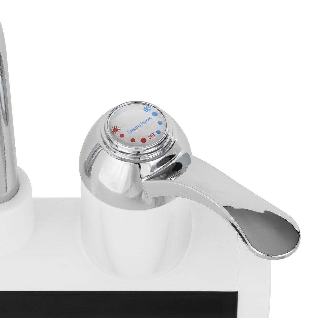 LASTNOSTI Barva izdelka Bela Vrsta upravljanja Ročica Pretok vode (maks.) 2,5 l/min Tlak vode (maks.) 600 kPa Najvišja temperatura tople vode 60 °C Stopnja zaščite IPX4 Vrsta montaže Namizna Materiali Nerjaveče jeklo, Plastika Razširjena barva izdelka Srebrna Vtič Da Vgrajen grelni element Da LED diode Delovanje