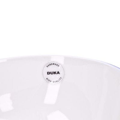 Krog Duka je namenjen vsem navdušencem nad nekonvencionalnim oblikovanjem. Ročno izdelan iz čistega belega porcelana ima asimetričen rob, ki ga poudarja nežno temno modro okrasje. Zaradi velike prostornine je kot nalašč za serviranje juh, enolončnic in hladnih prigrizkov, brez težav pa ga lahko operete v pomivalnem stroju. Poleg tega lahko Duka Krog segrevate v mikrovalovni pečici, zato imate popolno svobodo uporabe, ki je v sodobni kuhinji tako pomembna. Prepričajte se sami in izberite Duka Krog še danes!