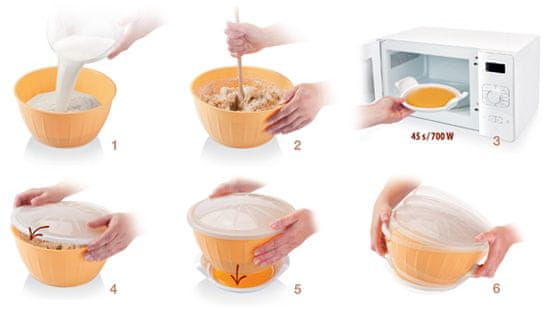 Posoda zagotovi kar do 2× hitrejše vzhajanje testa. V posodi zmešamo sestavine za testo, nato pa jo neprodušno zapremo s pokrovom. Posodo potem stresamo približno 1 minuto. Nato jo položimo na grelnik in prične se proces vzhajanja testa. Zahvaljujoč neprodušnemu pokrovu in grelcu, testo hitro naraste in doseže optimalno temperaturo. Posoda je izdelana iz kakovostne plastike in ima premer 26 centimetrov. Posodo in grelnik je mogoče** prati v pomivalnem stroju**.