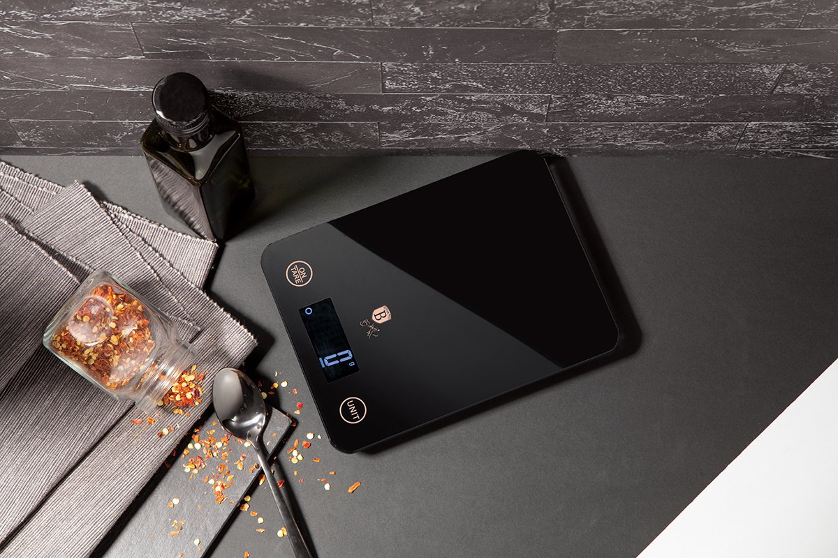 Super ravna kuhinjska tehtnica BERLINGER HAUS. Praktično in estetsko v barvah linije Black Rose, izdelano iz kaljenega stekla. Občutljivost tehtnice je 1 g, največja tehtana teža pa je 5 kg. Indikacije so prikazane na velikem zaslonu LCD s tekočimi kristali. Ima zelo priročno funkcijo samodejnega ničliranja in funkcijo TARE. To pomeni, da lahko sestavine damo v skledo in jih odtehtamo po koščkih, ne da bi odstranili prejšnje, ki so tam. Ta model je estetski in izdelan iz visokokakovostnih materialov. Tehtnico lahko uporabljate s posodo ali brez nje. Barvna shema je usklajena s kolekcijo Black Rose