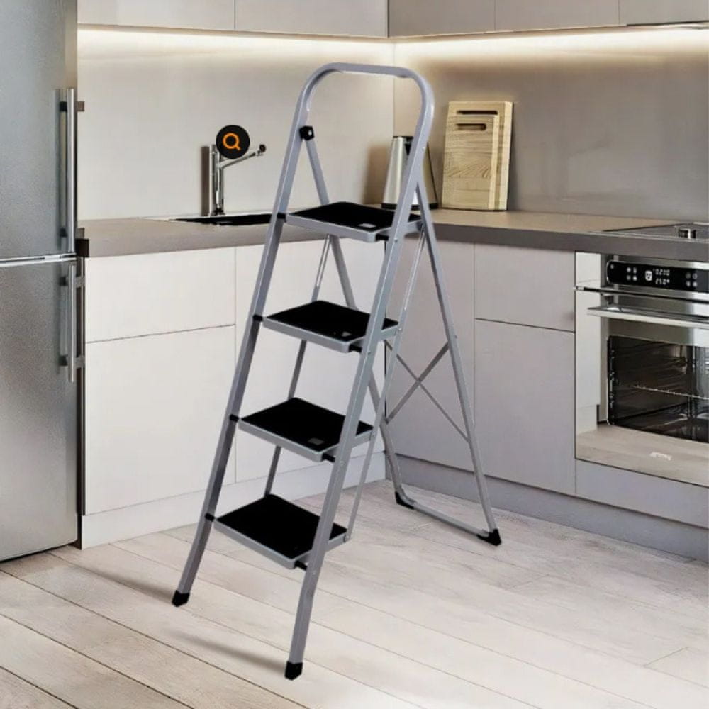 ✔️Pozabite na tveganje padca in stres – ta trdna jeklena lestev s 4 stopnicami pomeni samozavest, varnost in udobje!