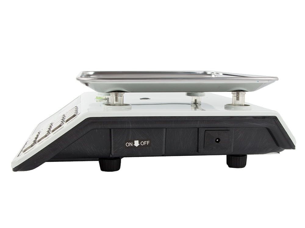 Trgovinska tehtnica je odlična rešitev in odlična izbira za vse, ki delate v maloprodaji in potrebujete natančnost tehtanja. S temi lestvicami je enostavno in preprosto delati, napisi na gumbih so jasno vidni. Tehtnica je zelo natančna, korak tehtanja je le 2 grama. Obstaja funkcija tare. Povzamete lahko več izdelkov z različnimi cenami in različnimi utežmi. Tehtnice delujejo iz omrežja in akumulatorja. Na strani kupca in prodajalca so trije zasloni, na katerih so prikazani vsi podatki o artiklu, ki se tehta: skupna cena, cena, teža.