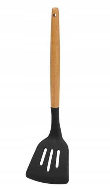Lopatica z luknjami iz serije Woody znamke Galicja je praktičen in estetski dodatek vsaki kuhinji. Izdelan iz visokokakovostnih materialov, zagotavlja vzdržljivost in odpornost na poškodbe. Luknje omogočajo hitro odtekanje odvečne maščobe ali vode, zaradi česar so jedi bolj zdrave. Zahvaljujoč elegantnemu črnemu dizajnu z lesenim ročajem bo lopatica z luknjami tudi okras kuhinje.