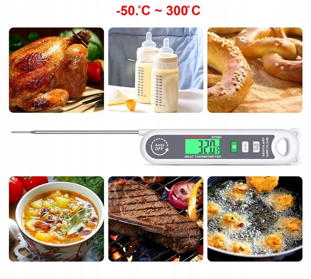 Zahvaljujoč tej napravi lahko natančno preverite temperaturo obrokov, ki jih pripravljate. Je idealen za merjenje temperature mesa, peciva, tekočine in vseh drugih živil in pijač.