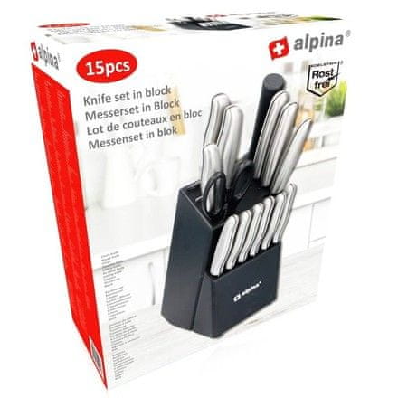 Alpina Komplet nožev Alpina ED-212293 Komplet nožev v stojalu 15 kosov iz nerjavečega jekla
