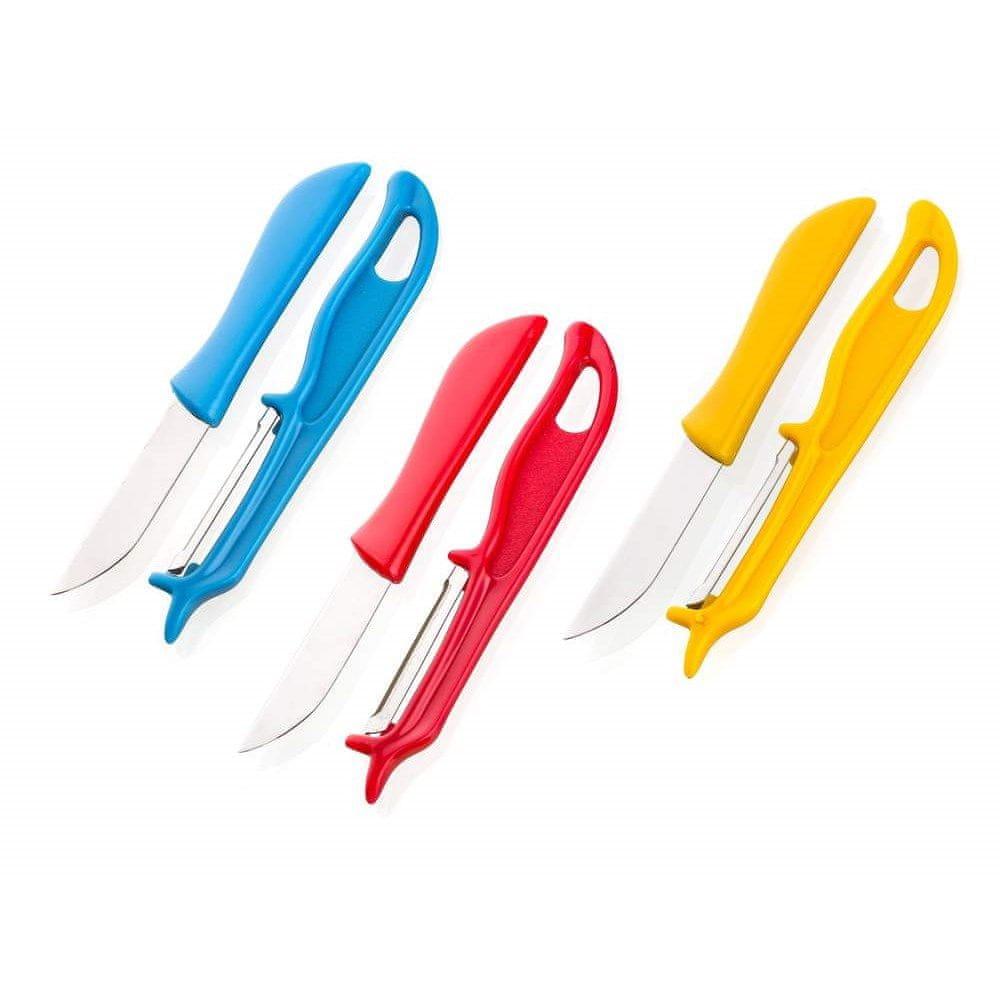 Komplet za rezanje APETIT, sestavljen iz noža dolžine 15 cm in strgala dolžine 13,5 cm. Nož in strgalo sta izdelana iz nerjavečega jekla, ročaj pa iz trpežne plastike.Strgalo je primerno za desničarje in levičarje. Na voljo v rdeči, rumeni in modri barvi. Celoten opis
