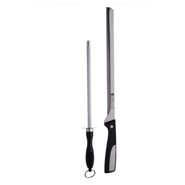 Sestavljen je iz dveh kosov, kar vključuje nož za pršut dolžine 28 cm. Ta nož je posebej zasnovan za rezanje pršuta, kar vam omogoča, da dosežete tanke in enakomerne rezine.