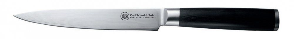 • dolžina rezila 18 cm – 67-delno japonsko jeklo – visokokakovostni material rezila VG 10 HRC 60 +/- 2 – ergonomski leseni ročajVisokokakovostni materiali nožev serije Carl Schmidt Sohn KONSTANZ zagotavljajo popoln oprijem in čist rez za ljubiteljske in profesionalne kuhinjske navdušence.