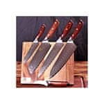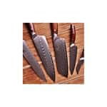 Ročaj teh čudovitih in visokokakovostnih nožev je izdelan iz barvno zelo privlačnega palisandra. Ročaji so oblikovani tako, da se odlično prilegajo roki in zagotavljajo udobje. Noži so popolnoma uravnoteženi in preprečujejo utrujenost rok. Posebnooblikovana oblika ščitnika je primerna za azijski prijem nožev. Trojno kovičenje zagotavlja močno povezavo med damaščanskim jeklom in ročajem.