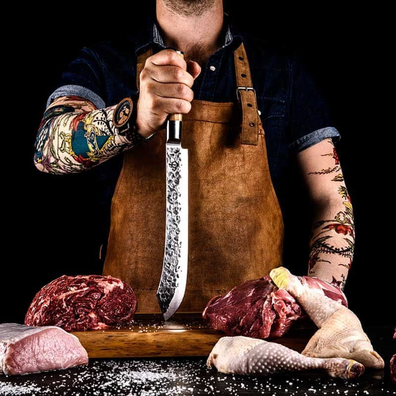 Mesarski noži sprva padejo v oči zaradi presenetljive zasnove rezila. Rob rezila je lepo zaobljen, kot se za dober mesarski nož spodobi. Pogosto se uporablja za rezanje velikih kosov mesa in je zelo priljubljen v strokovnih krogih. Celoten opis