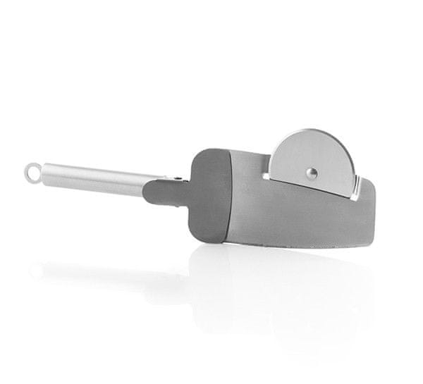Izviren in praktičen nož za rezanje pice je popolnoma inovativne oblike, saj ima disk za rezanje, nazobčane zobe za rezanje robov, lopatico za deljenje in objemalko. Celoten opis