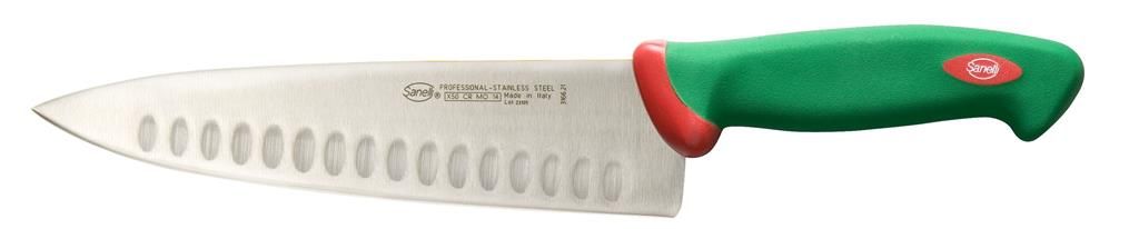 profesionalno kuharsko uporabo, rezilo z rebri pa bo poskrbelo, da se nanj prime manj ostankov hrane. Rezilo Sanelli nožev je proizvedeno iz visokokvalitetnega X50 CR MO 14 ali X60 CR MO V 14 nerjavečega jekla, izredno visoko postavljen standard, ki zagotavlja dolgotrajno življenjsko dobo rezila. Ročaji Sanelli nožev so proizvedeni s prav posebno tehnologijo