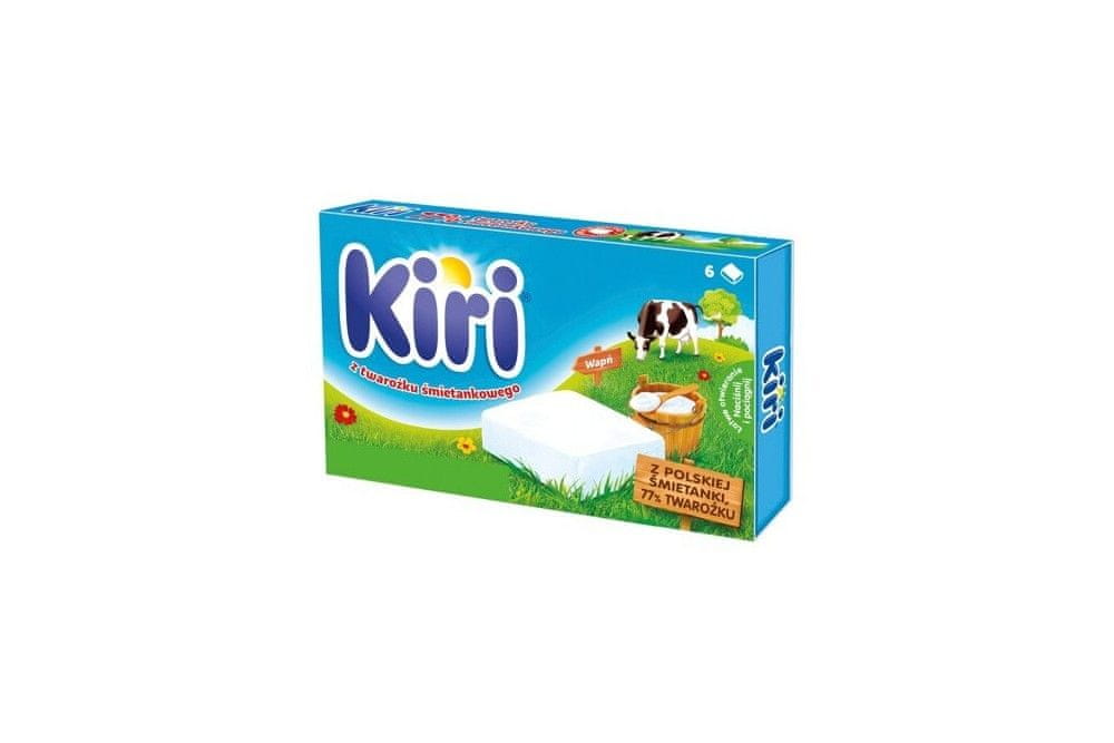Sestavine Kiri topljeni sir iz kremne skute, skuta min. 77 % (od tega smetana 57 % v izdelku) – 6 porcij. Sestavine: skuta 77 %, voda, maslo, mlečne beljakovine, koncentrat mlečnih mineralov, emulgator: sol: E452, sol.