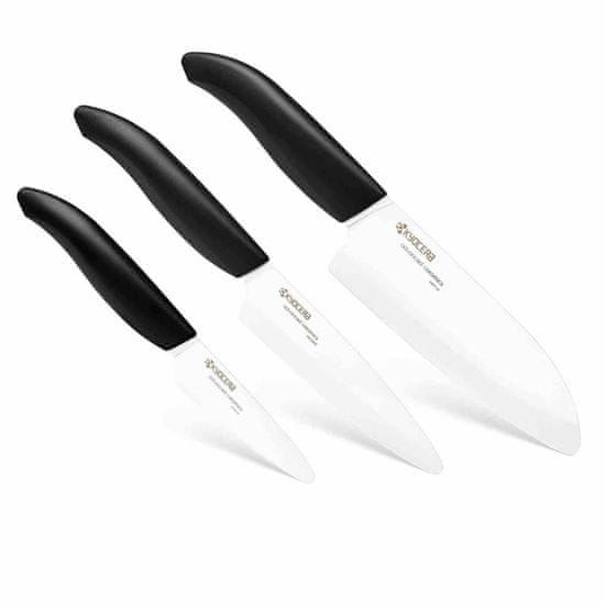priloženi noži: za sadje (7,5 cm), univerzalni (11 cm) in Santoku (14 cm), – ergonomski ročaji iz ABS plastike, – izjemno ostra rezila iz cirkonijeve keramike (Z206), ročno rezana, – POZOR keramika nožev ne uporabljajte le na lesenih ali plastičnih deskah za rezanje in za rezanje mesa s kostmi, za Celoten opis