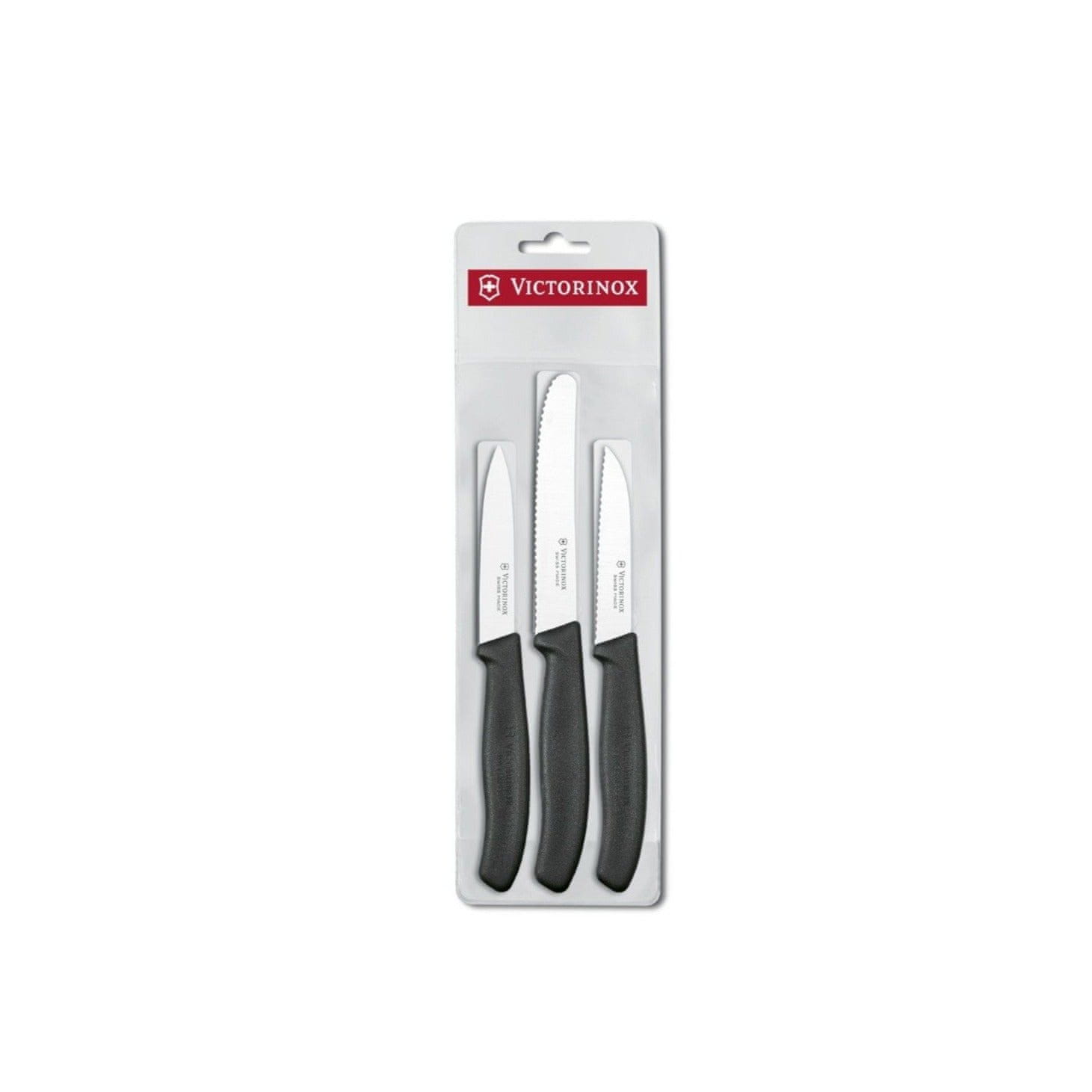 Set treh nožev ima dva noža z nazobčanim robom in enega z ravnim robom rezila. Odlični za rezanje zelenjave in sadja v kuhinji. Je varno pranje v pomivalnem stroju.Dolžina rezila: 8, 8, 11 cmMaterial ročaja: PPMaterial rezila: InoxVictorinox je 130 let staro švicarsko družinsko in globalno podjetje. Švicarski nož je osrednji izdelek in ima pionirsko vlogo pri razvoju vseh kategorij izdelkov.