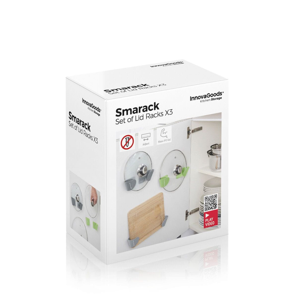 InnovaGoods vam bo pomagal pri kuhanju na enostaven in zabaven način s ponudbo najboljši novosti za vašo kuhinjo, kot je Komplet 3 samolepilnih držal za kuhinjske pokrove Smarack InnovaGoods Kitchen Storage! Odkrijte široko izbiro kakovostnih izdelkov, ki izstopajo zaradi svoje funkcionalnosti, učinkovitosti in inovativnega dizajna!
