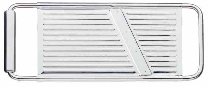 rezalnik za kumare, krompir, korenje itd., – debelina rezin: 1 mm, – z ročajem, – trdna konstrukcija iz trpežnega Cromargan nerjavečega jekla, – primerna za pomivalni stroj. Dimenzije: 30 × 12 cm (D x Š) Material: Cromargan® 18/10 nerjaveče jeklo Barva: srebrna