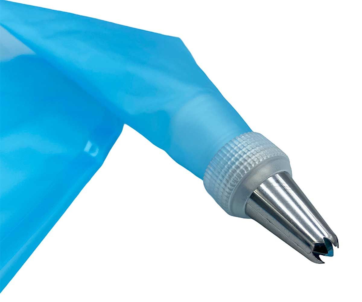 • Nastavek trdno drži konico tudi pod visokim pritiskom in pri gosti kremi, poleg tega pa vam omogoča zamenjavo konice, ne da bi morali kremo vzeti iz rokava – Popolnoma varen za zdravje in živila nevtralen Material: nerjavno jeklo, silikon, plastika Dimenzije: Konice – premer osnove 1,8 cm, višina 3 cm Konfekcijski rokav – dolžina 30 cm, širina 18 cm Jeklena lopatka – dolžina 27 cm