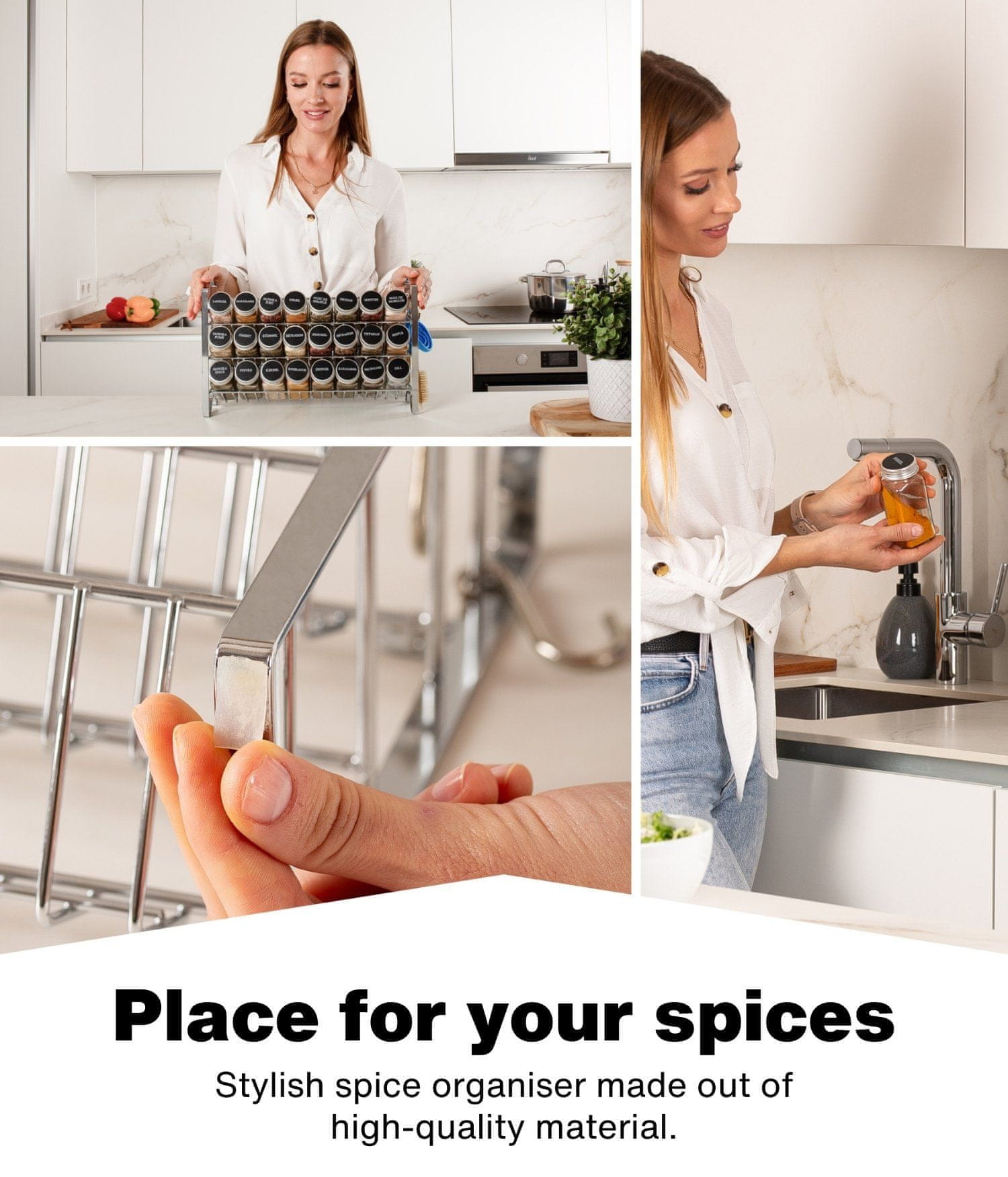 ✅ Za vse, ki svojo kuhinjo veliko uporabljate – naše stojalo za začimbe je robustno in trpežno. Okvir je čvrst in stabilen. Z lepilnimi blazinicami lahko preprečite, da bi vam stojalo opraskalo pult.