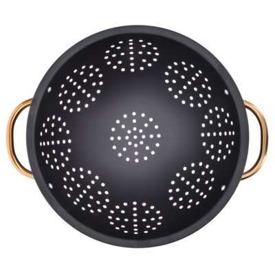 cedilo duka fint je klasičen kos kuhinjske opreme, ki ima svoje mesto v vsaki kuhinji. Z njim lahko udobno in predvsem varno odcedite kuhane testenine ali zelenjavo ter jih nato odložite, da se odcedijo. Cedilo Duka Fint z dvema priročnima ročajema in stabilno podlago je prijetno preprosto za uporabo in ga bodo cenili vsi ljubitelji kuhanja. Izdelan je iz trpežnega nerjavečega jekla in končan v mat črni barvi, ki se lepo ujema z bakreno-zlatim odtenkom ročajev. Zato cedilo duka fint ne bo le praktičen, temveč tudi eleganten dodatek k vsaki sodobni kuhinji – prinesite ga v svojo kuhinjo še danes!