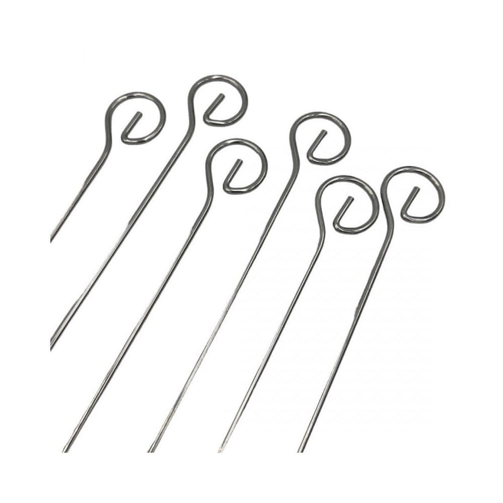 Komplet 6 jeklenih nabodal za pripravo različnih vrst nabodal. Nabodala so izdelana iz debele žice s sploščenimi konicami, ki preprečujejo, da bi meso ali zelenjava zdrsnila pri obračanju ali odstranjevanju nabodal z žara.
