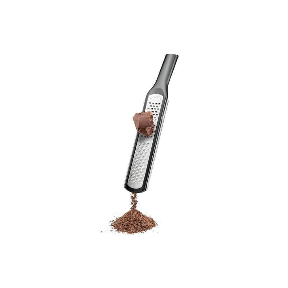 Večfunkcijski strgalnik RAFINO je nepogrešljiv pripomoček v vaši kuhinji. Z dvema površinama za strganje lahko trdo hrano, kot so parmezan, ingver, čokolada ali limonina lupinica, v trenutku spremenite v nežne kosmiče ali fine ostružke. Konkavna površina zagotavlja učinkovito in hitro strganje. Poleg tega nedrseča podlaga in ergonomski ročaj zagotavljata varno uporabo.