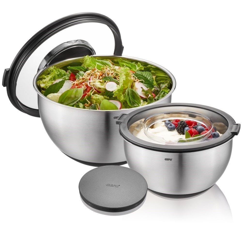 Gefu Muovo 2 kosa kuhinjskih skled iz nerjavečega jekla s pokrovom