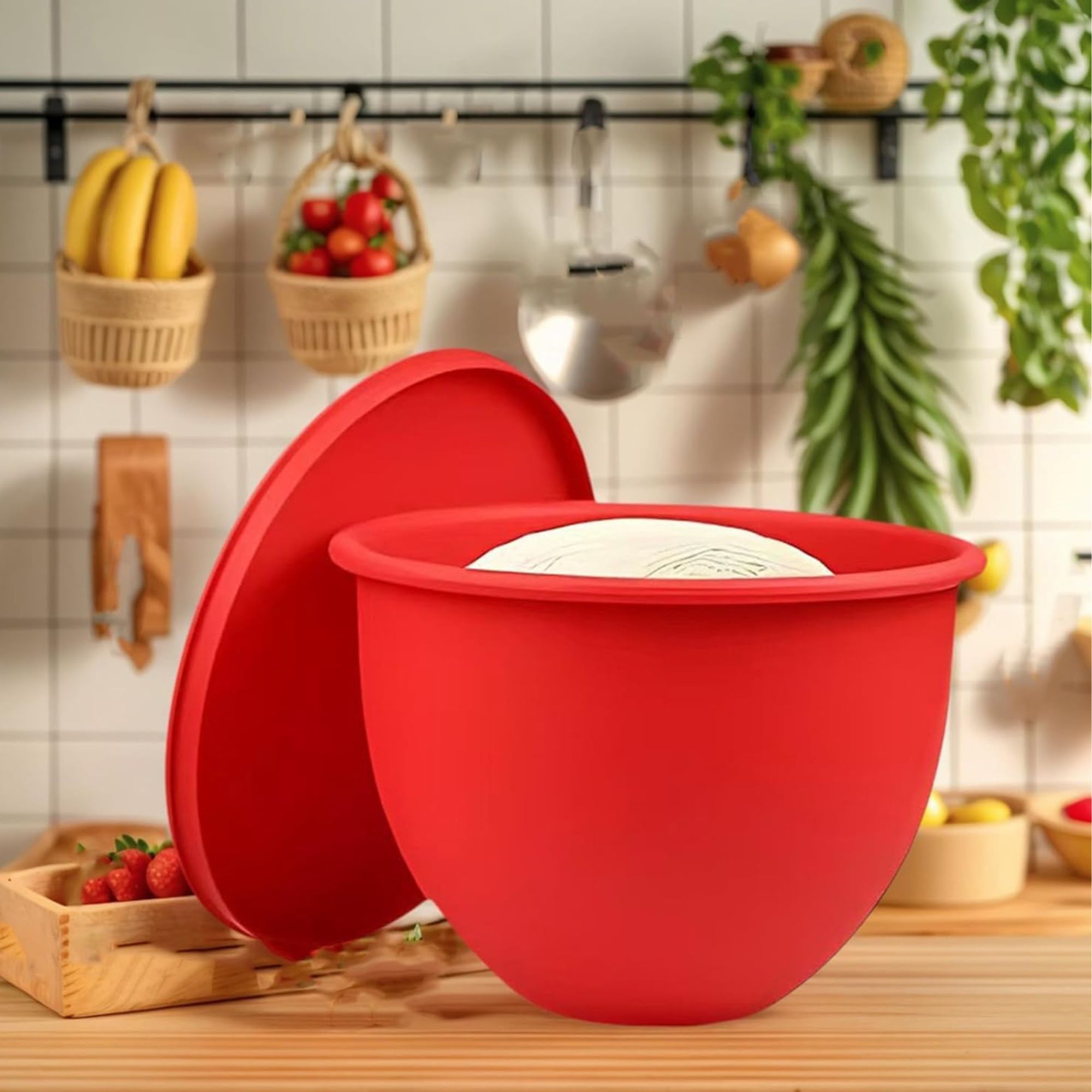 HOME & MARKER® Silikonski vložek za mešalnik KitchenAid, večkratna uporaba, s pokrovom | POSODINKA Rdeča