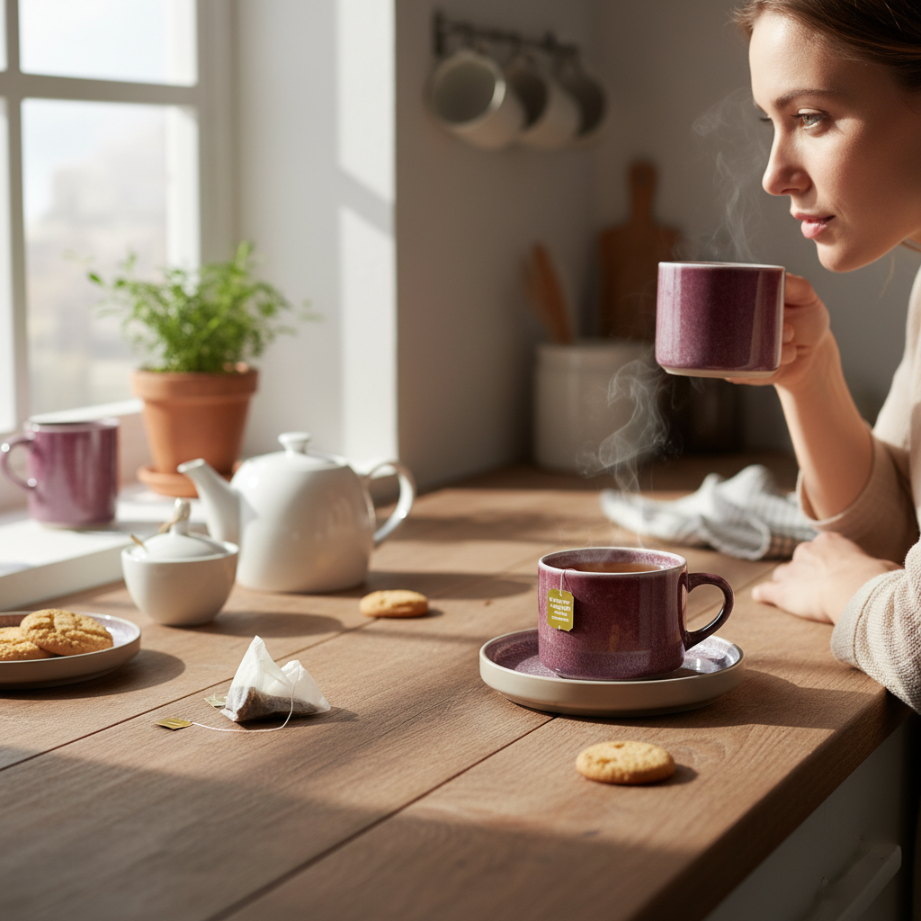 za postrežbo vaših najljubših jedi, zato boste ponovno odkrili užitek vsakodnevnih druženj – pa naj bo to hitro kosilo ali formalna večerja. Nežna tekstura glazirane keramike v kombinaciji s toplim, slivovim odtenkom ovije čute. Vsak krožnik in skleda z uravnoteženimi dimenzijami ni le lepa na mizi, ampak ima tudi mehko, satenasto površino, ki je na dotik prijetna. Ta komplet skoraj šumi od miru in vas vabi k dolgim pogovorom za mizo ☀️.