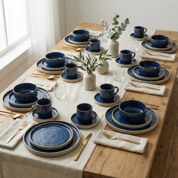 - – popolnoma dopolnjen jedilni servis vam omogoča, da postrežete večjo skupino gostov. ✅ Edinstvena temno modra barva