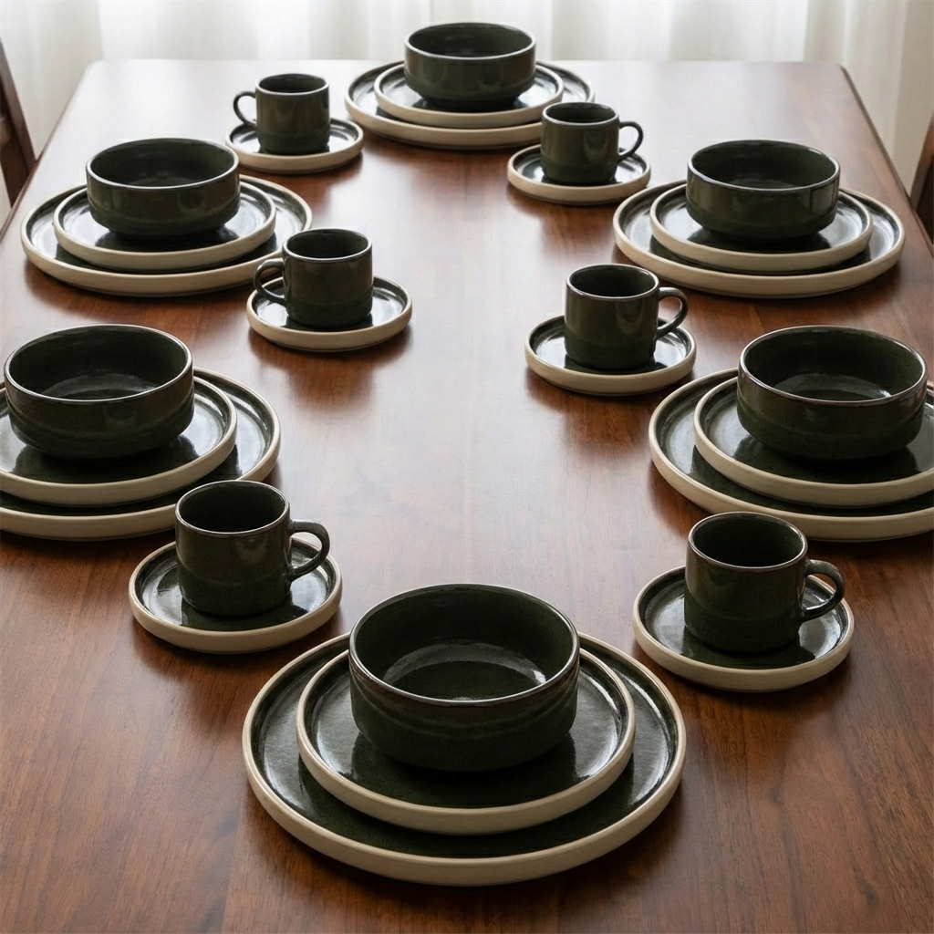 Odkrijte edinstven KERAMIČNI SERVIS ZA VEČERJO STOS GREEN, 30 KOSOV v čudoviti zeleni barvi – popoln za serviranje!