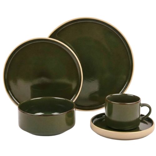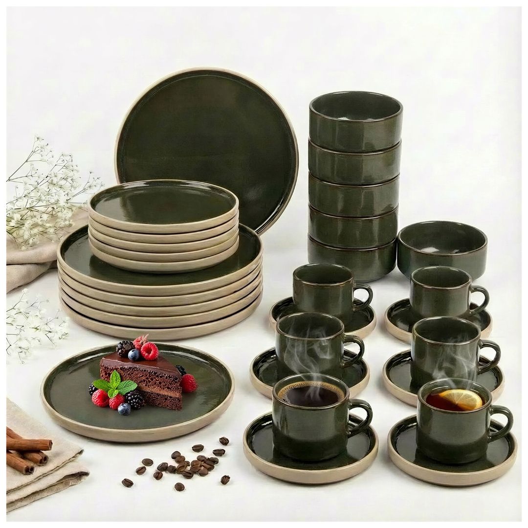 shumee 30-DELNI KOMPLET ZA VEČERJO IN KAVO ZA 6 OSEB ZELENE KERAMIČNE SKODELICE ZA KAVO