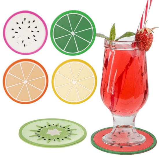 PRAKTIČNO – Set šestih podstavkov za skodelice in kozarce s toplimi in hladnimi napitki. Podstavki spominjajo na sadne rezine. Vsak podstavek meri 8,5 × 8,5 cm.