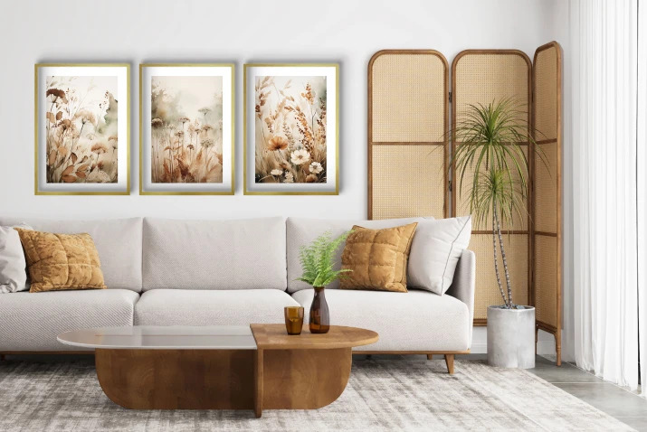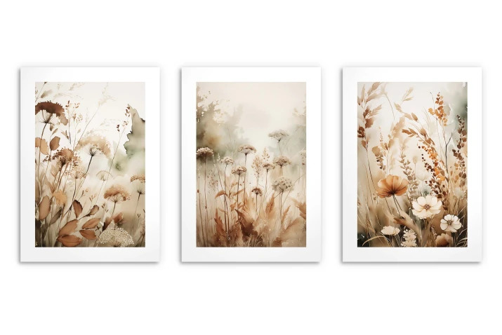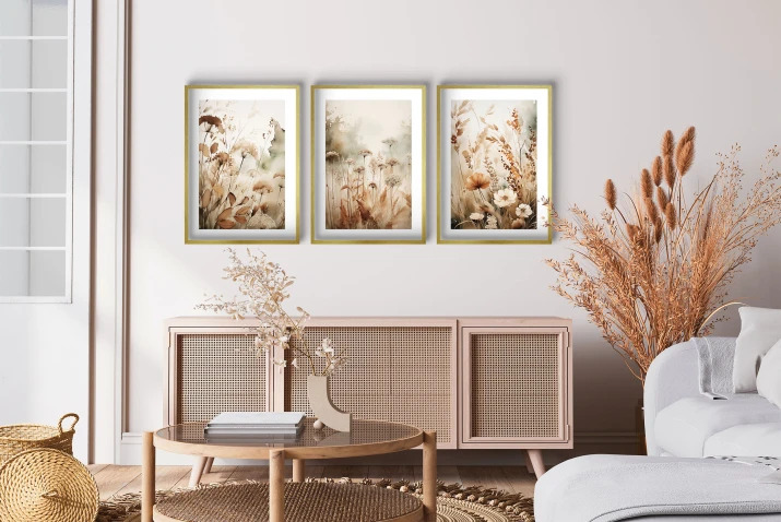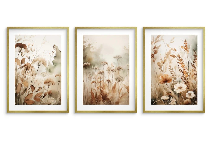 Boho plakati z zlatim okvirjem Stenska slika za dnevno sobo, spalnico Divje rože