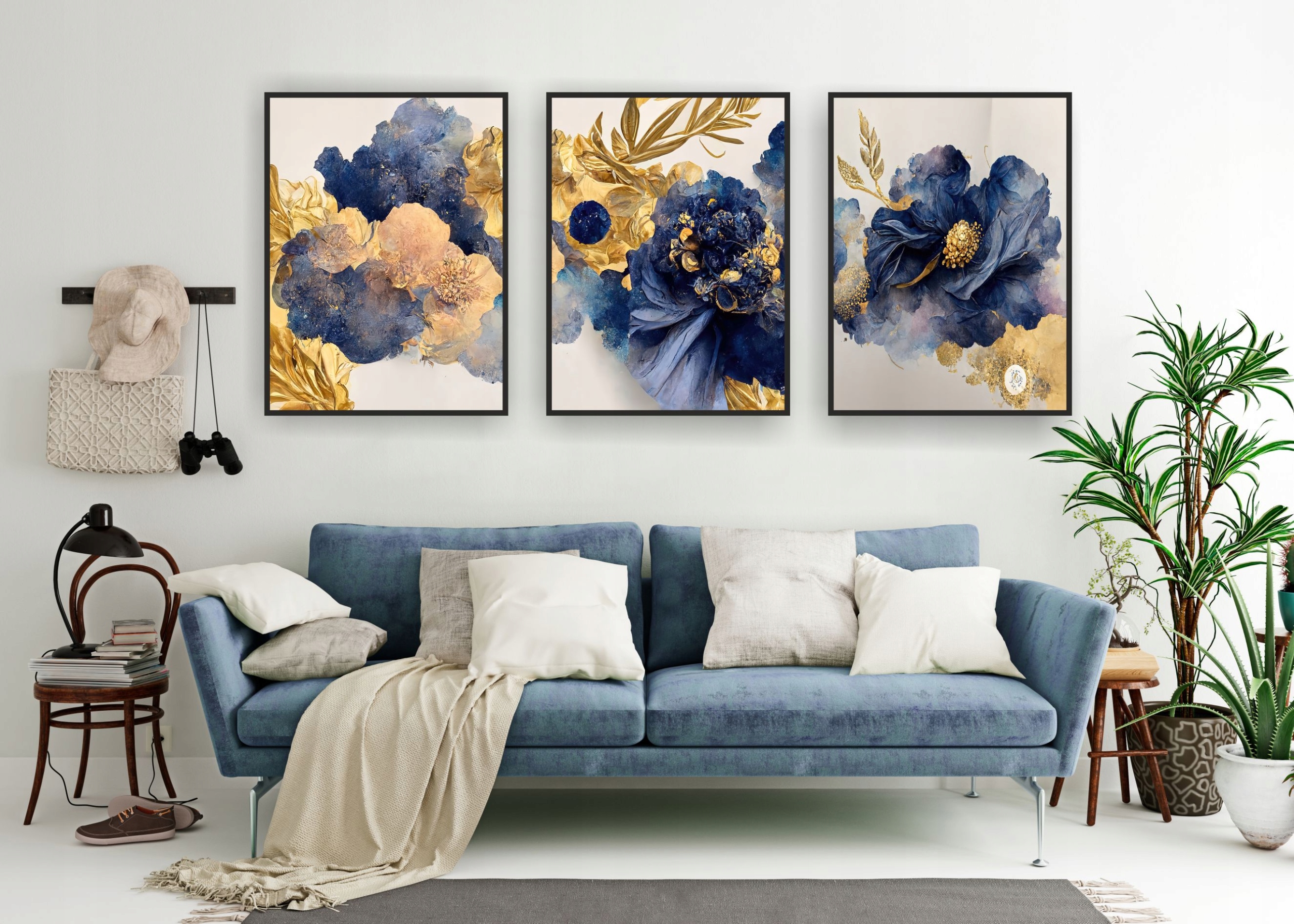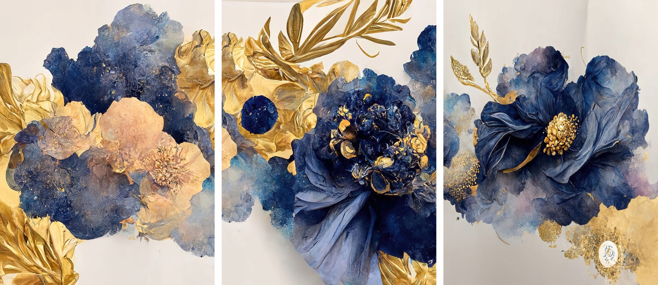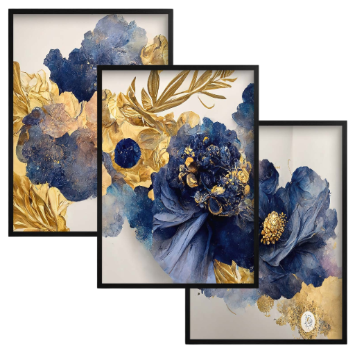 Okrasni triptih plakati Wall Art Gold Flowers za dnevno sobo.