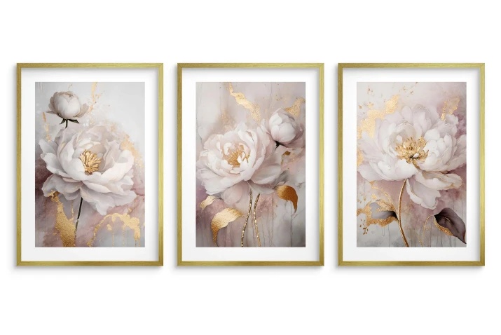 Elegantni plakati z zlatim okvirjem, glamurne stenske slike za dnevno sobo, spalnico Celoten opis