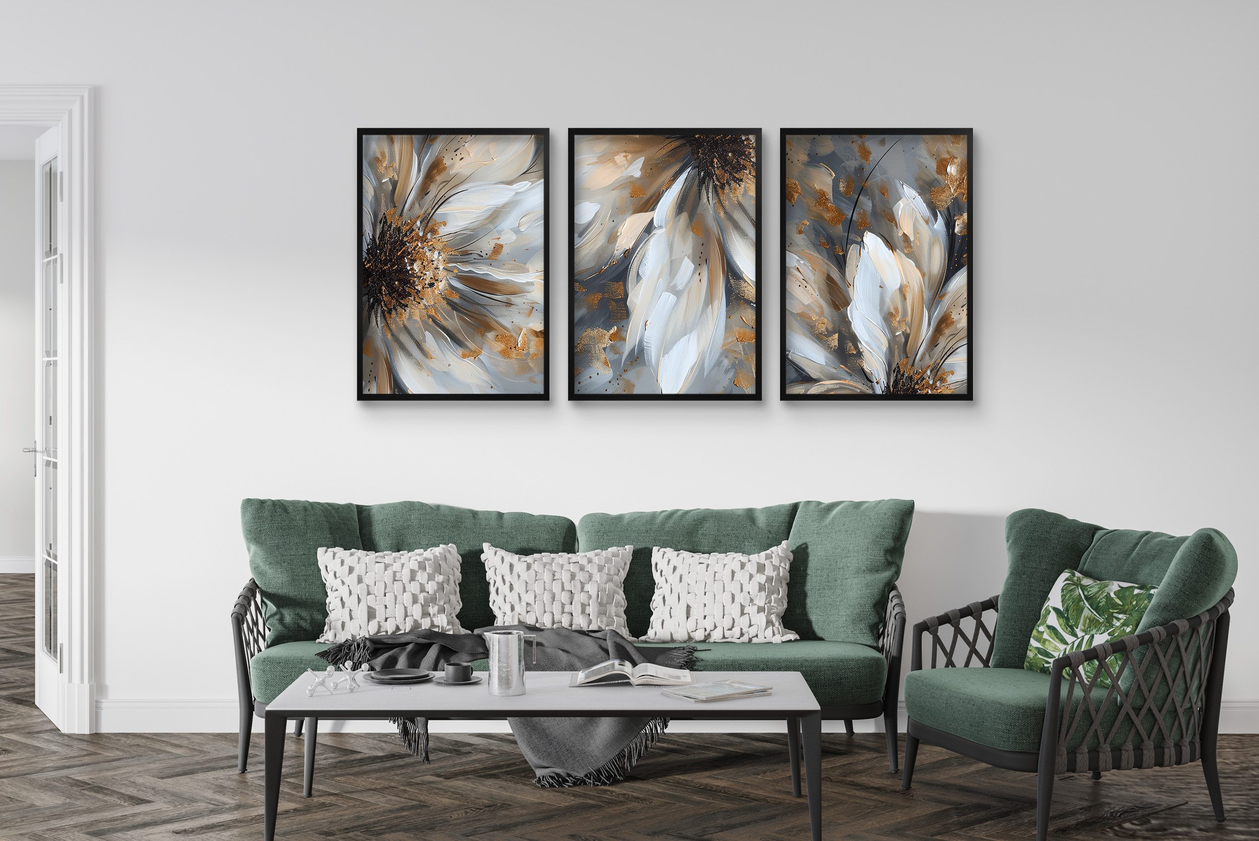 Set pastelnih stenskih plakatov – stenske slike zlate rože v akvarelu.