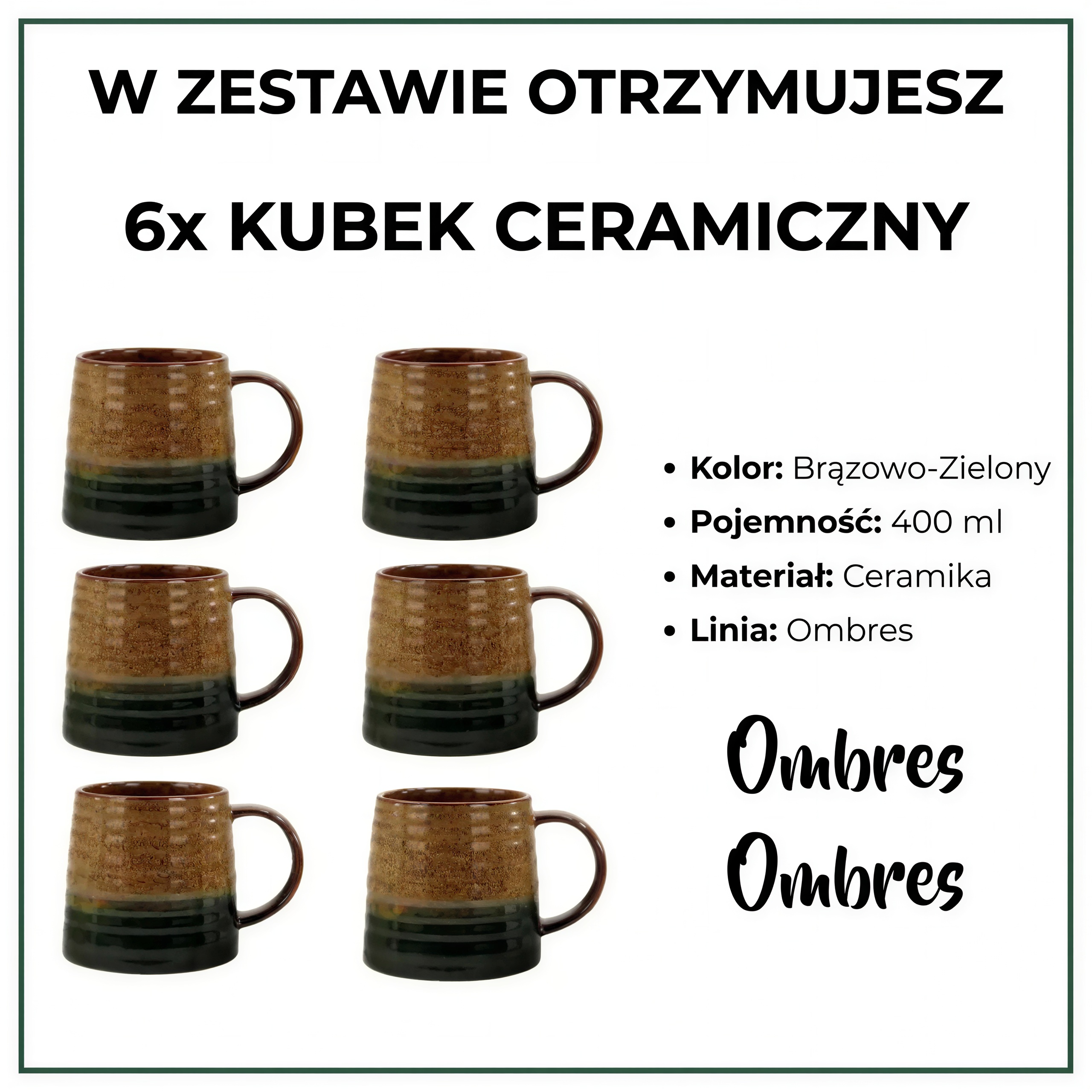 Odkrijte komplet KERAMIČNE LINE OMBRES KOMPLET INSTA SKODELIC X6 RJAVO-ZELENE – 6 skodelic v naravnih odtenkih, ki vas bodo navduševale vsak dan!