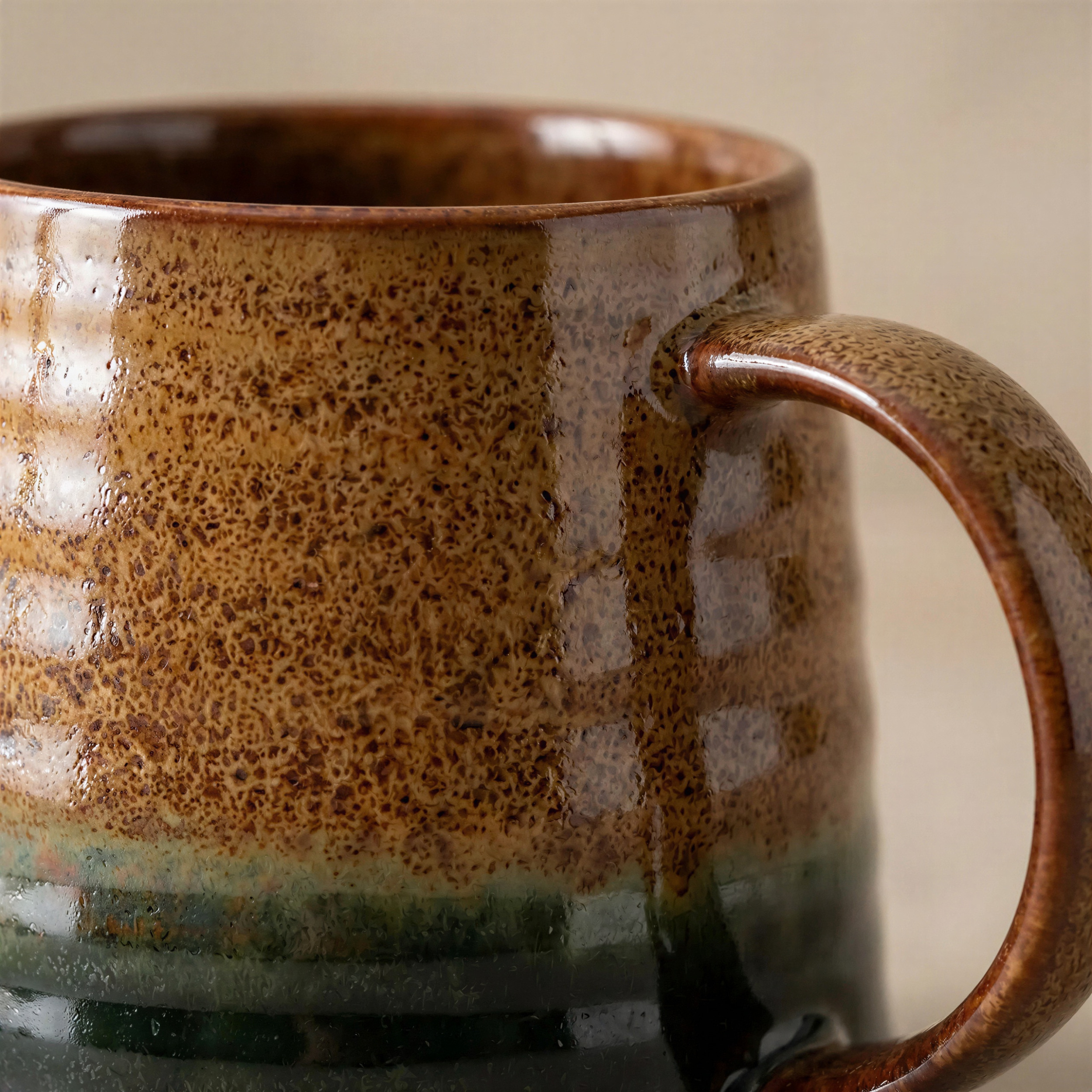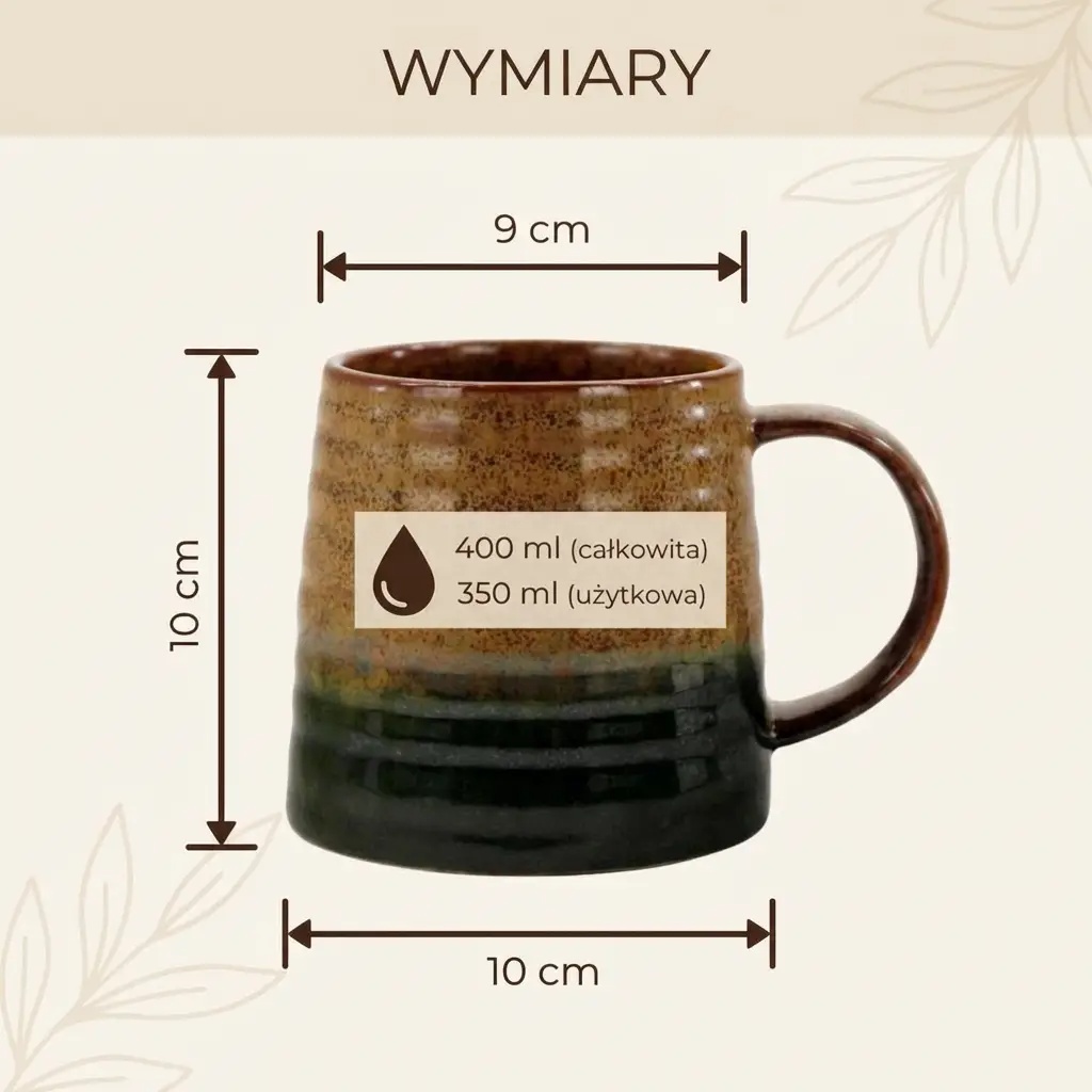 - ✅ Estetika in funkcionalnost – edinstvena, rjavo-zelena glazura z naravnim senčenjem in ergonomsko obliko s premerom 9 cm.