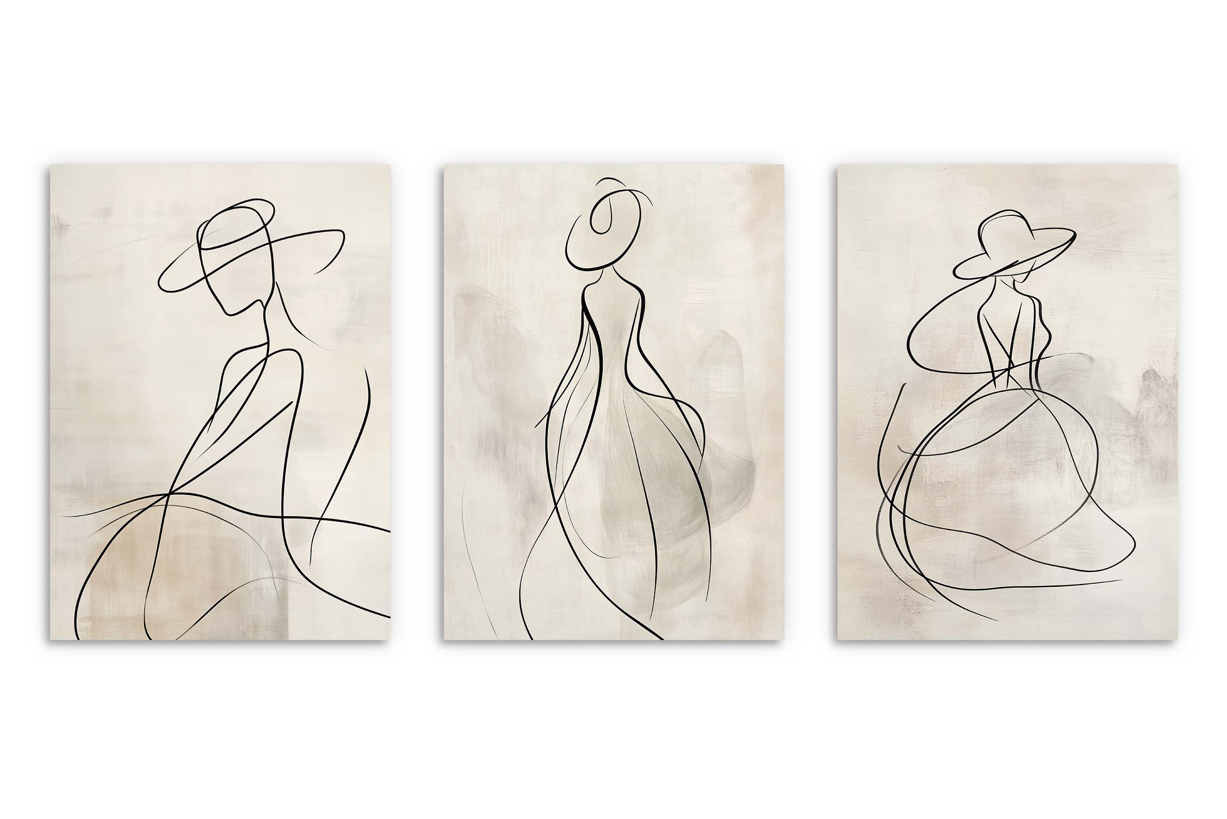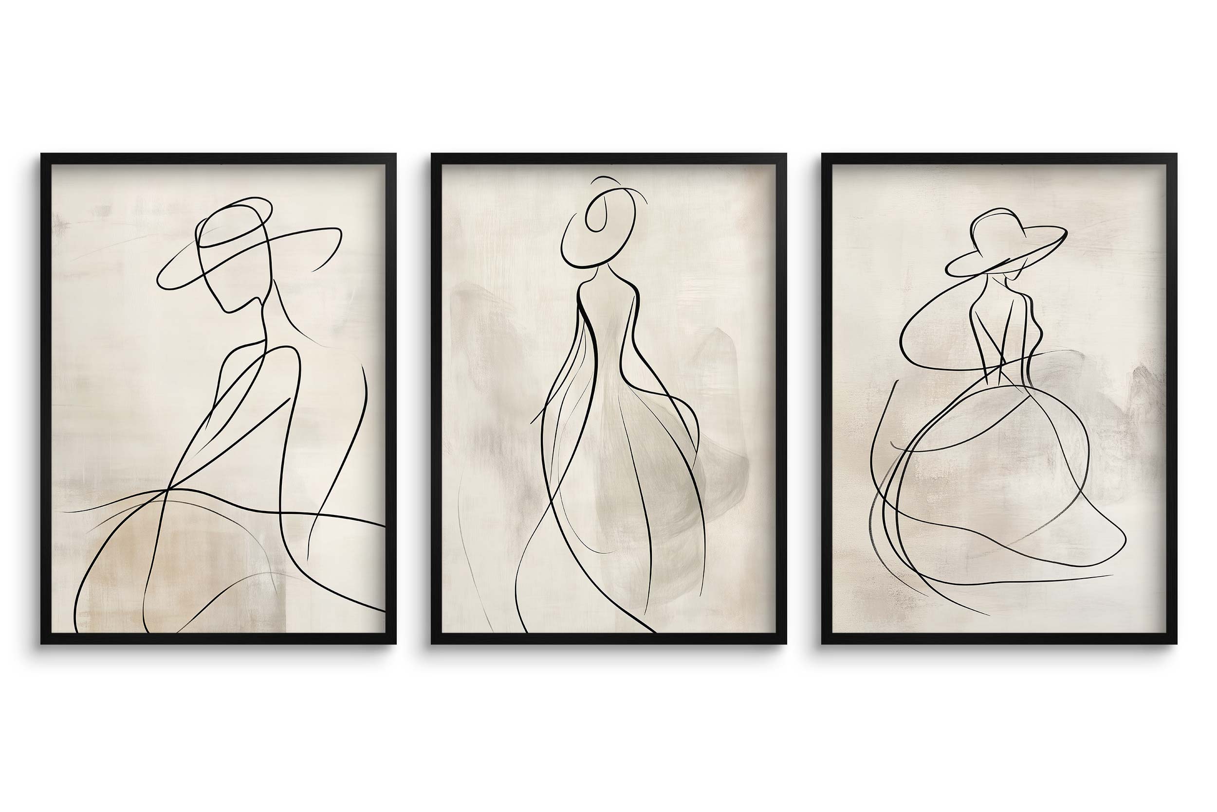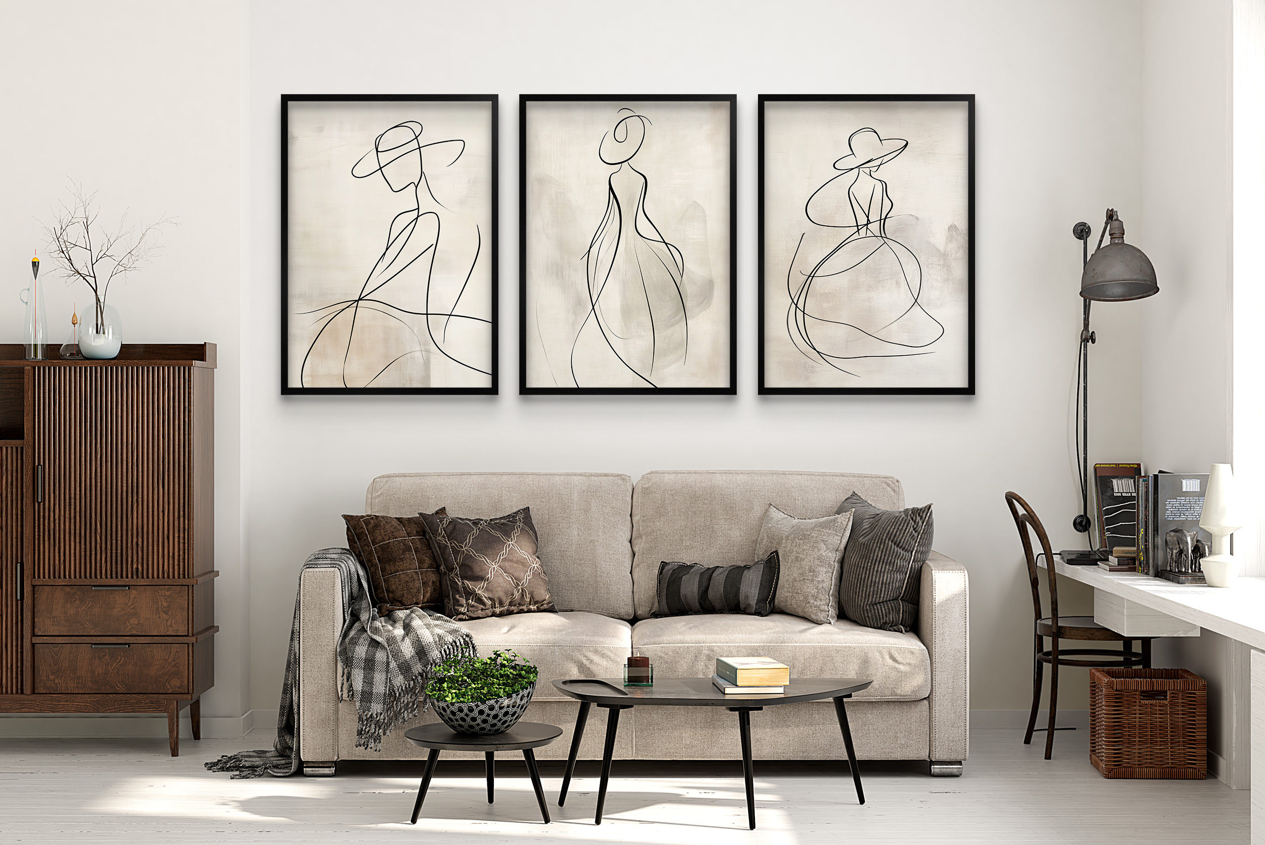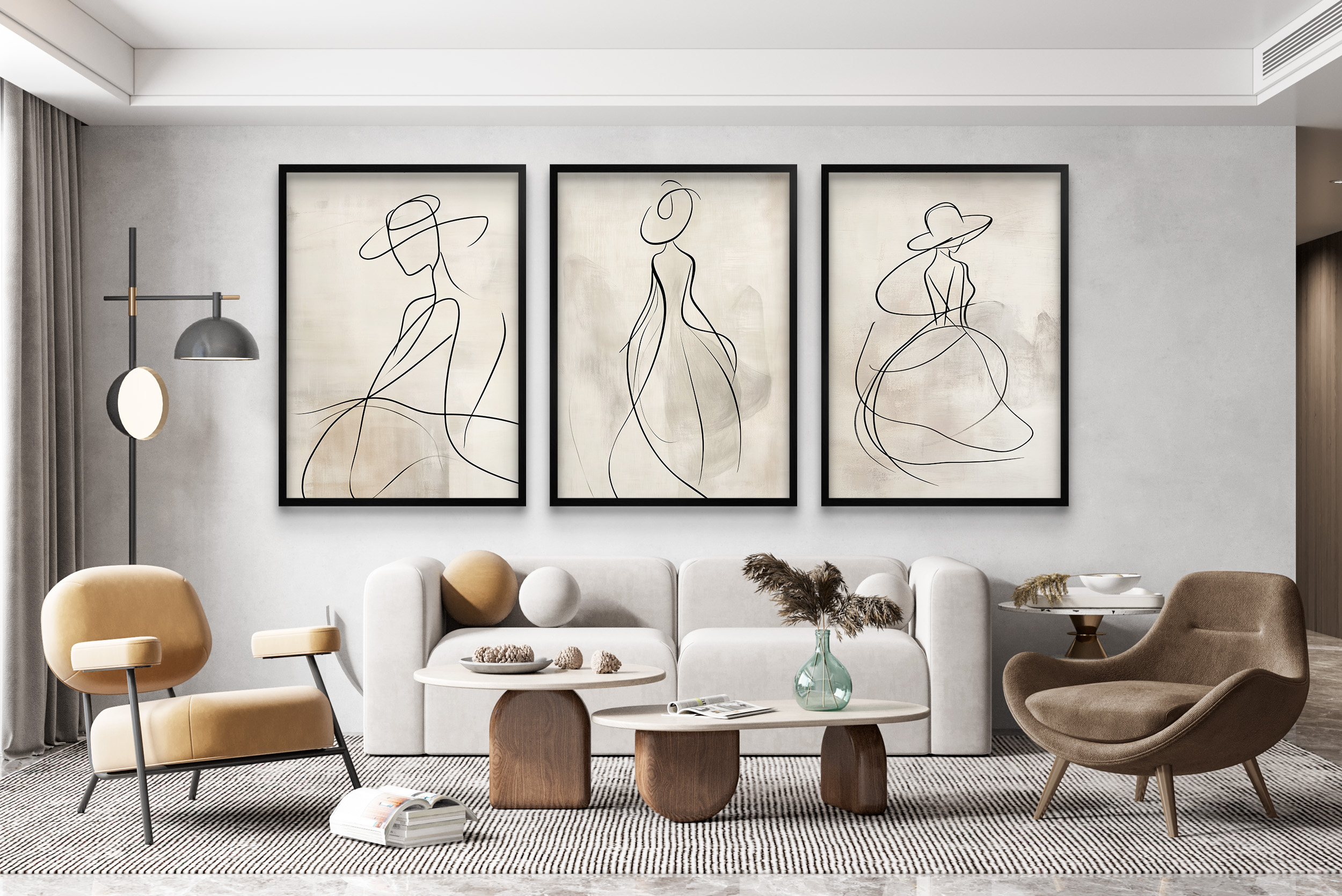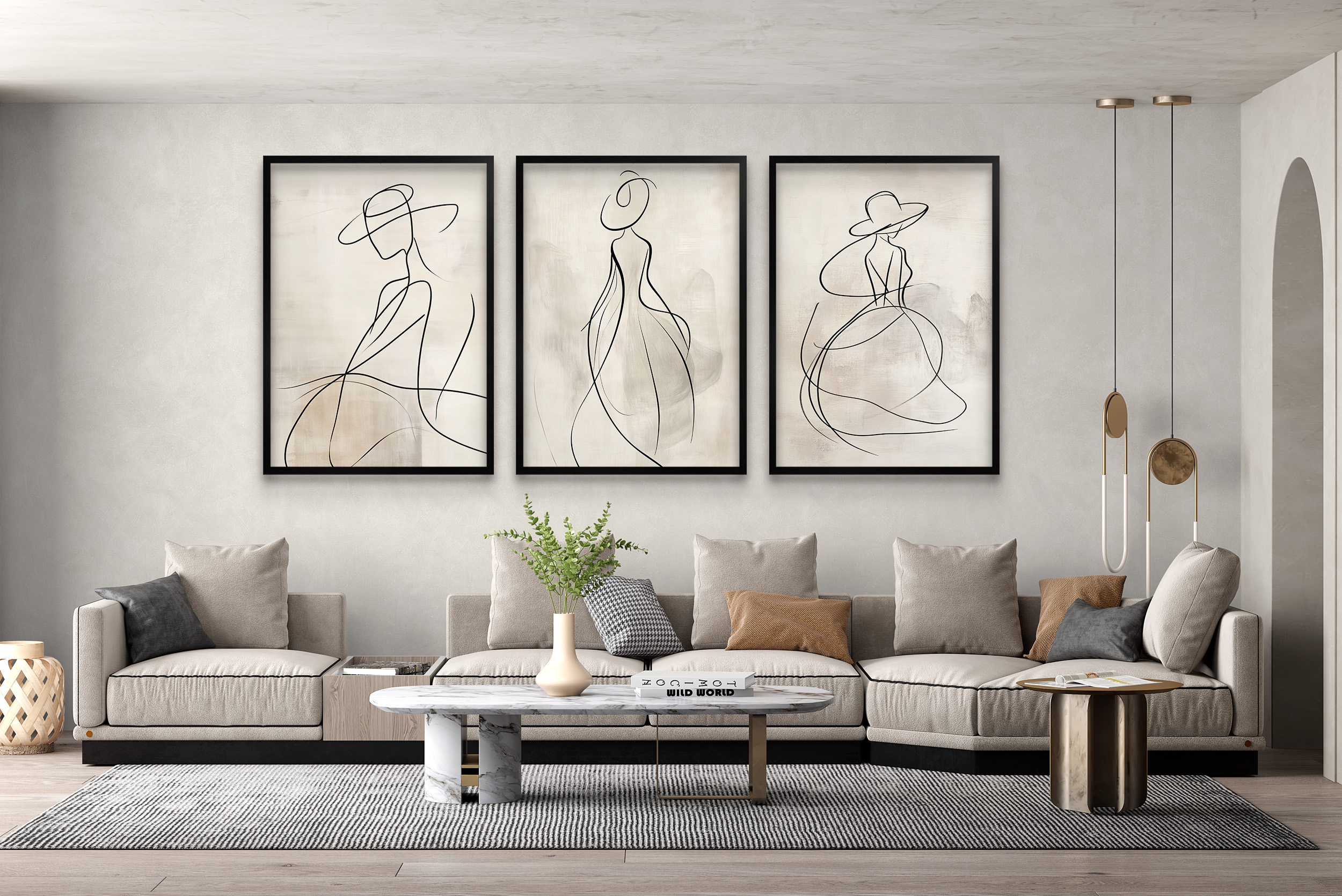 Moderni plakati, stenski umetniški triptih v boho okvirju za žensko dnevno sobo.