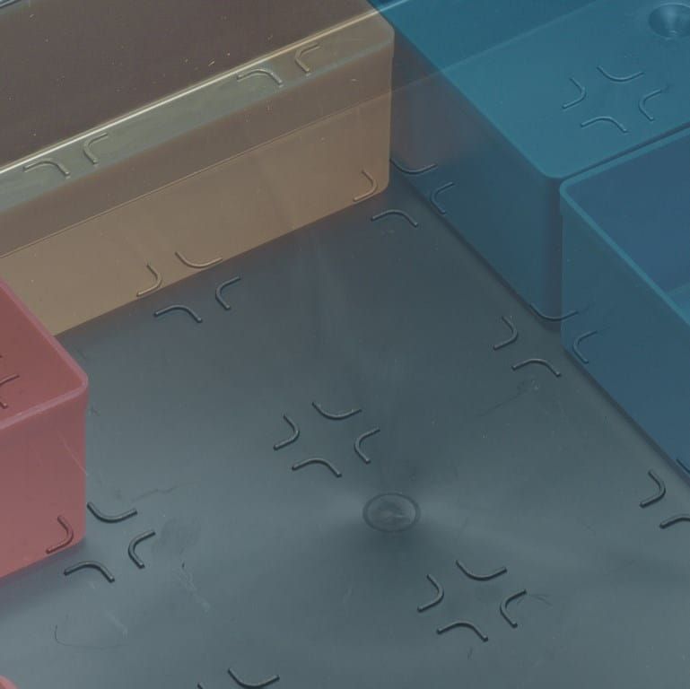 Ta organizator in 12 posod so izdelani iz visokokakovostne plastike. Ta zelo vsestranski izdelek omogoča prilagoditev z našo široko paleto posod. Priporočamo tudi ogled videoposnetka, ki prikazuje zmogljivosti organizatorjev v tej seriji.