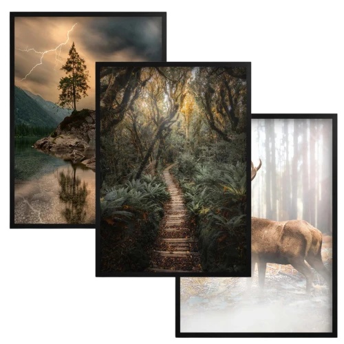 Plakati Stenske slike Črn okvir Gozd Gore Dekoracija dnevne sobe.