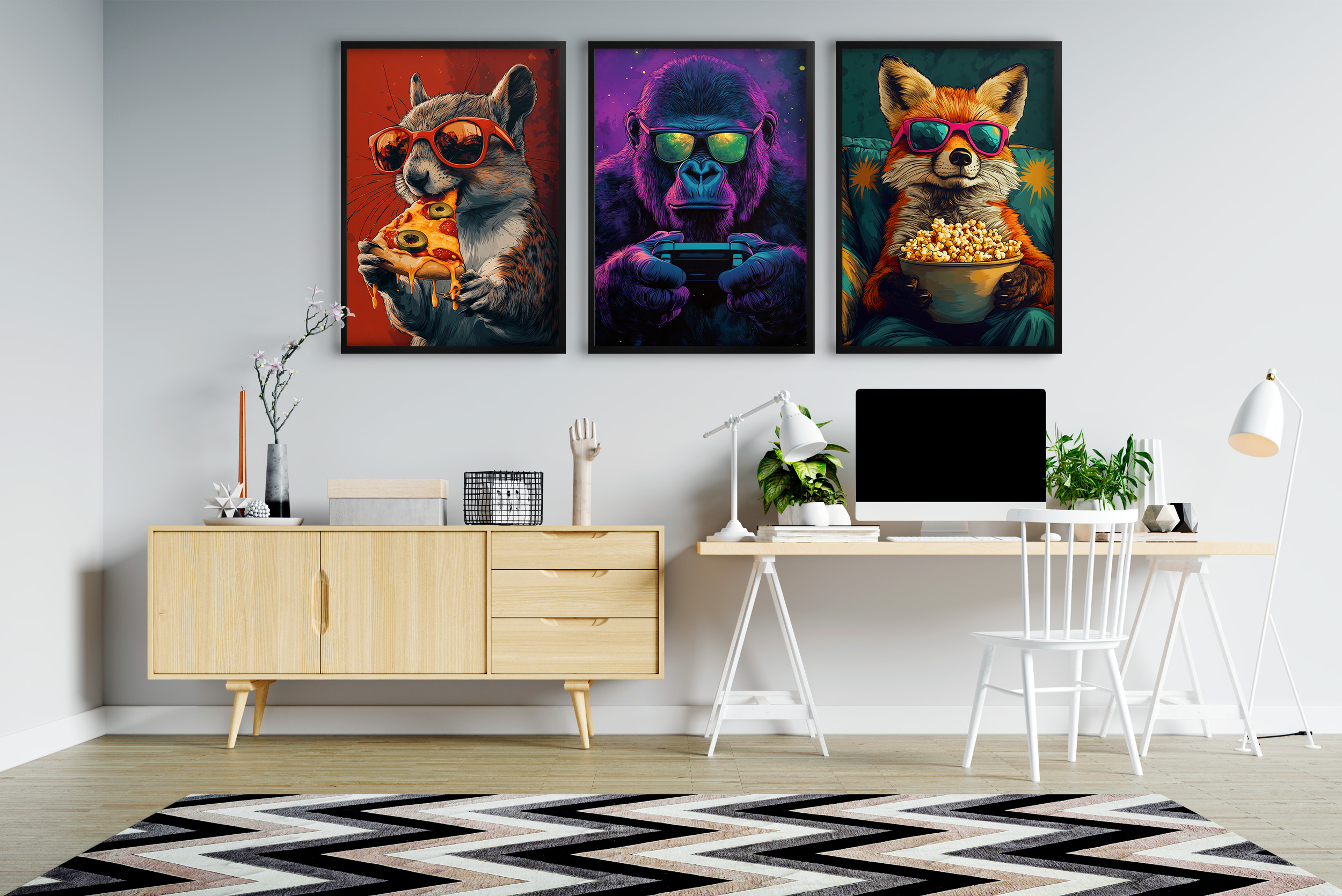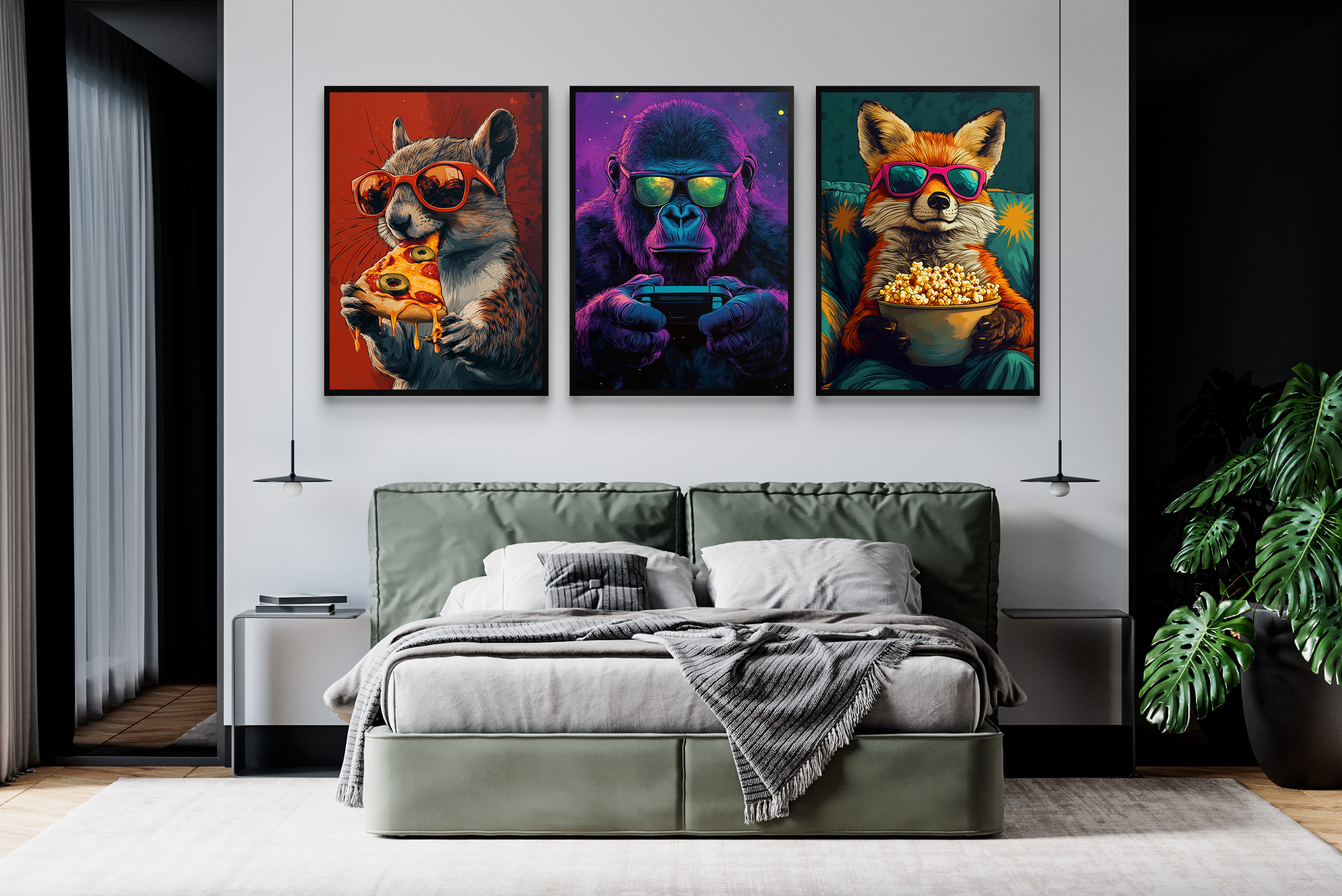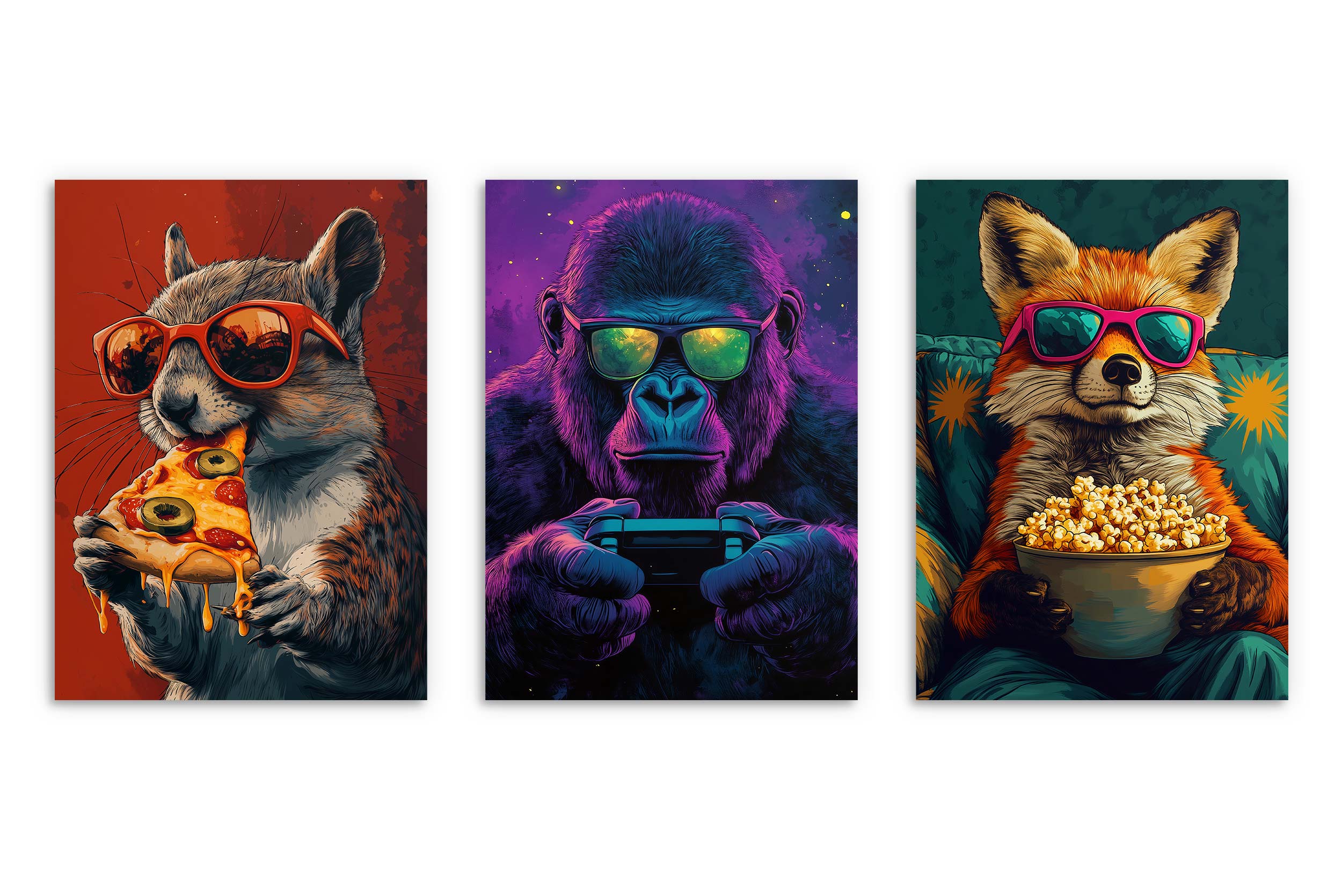 Slike: Uokvirjeni pop art plakati z živalmi za najstniško sobo.