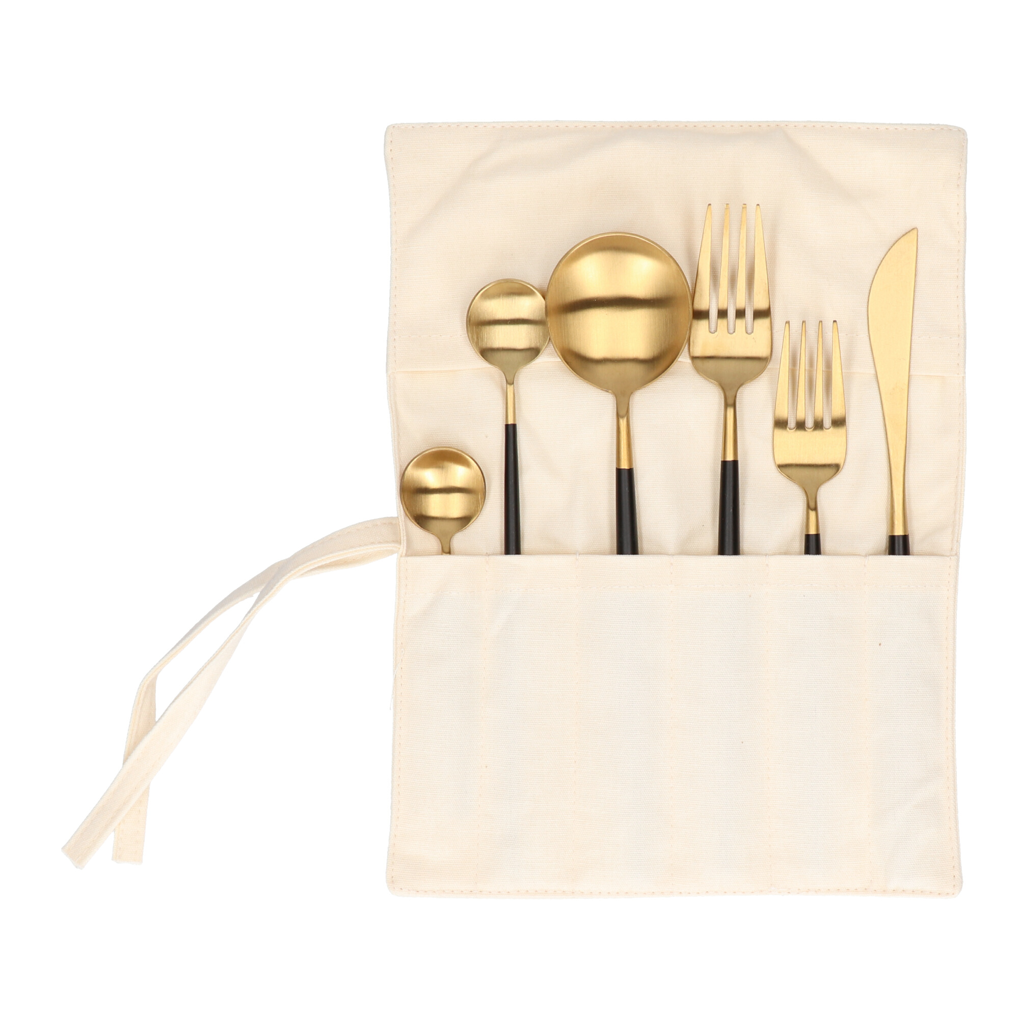 Portugalski set jedilnega pribora, 6 kosov, črno-zlat mat, v torbici Celoten opis