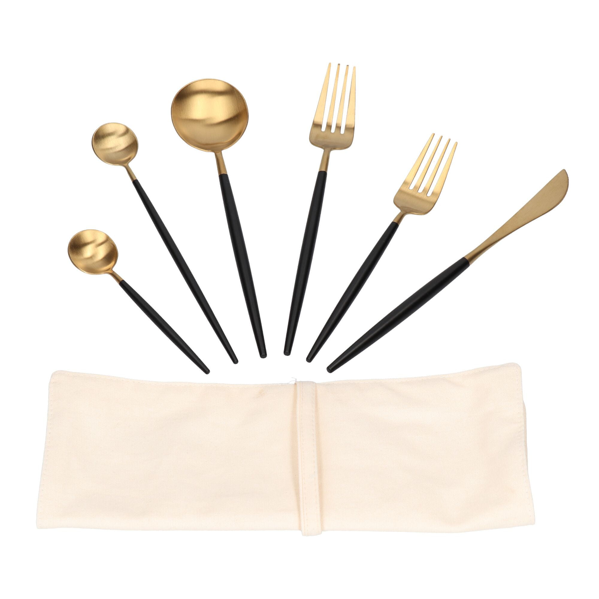 shumee Portugalski set jedilnega pribora, 6 kosov, črno-zlat mat, v torbici